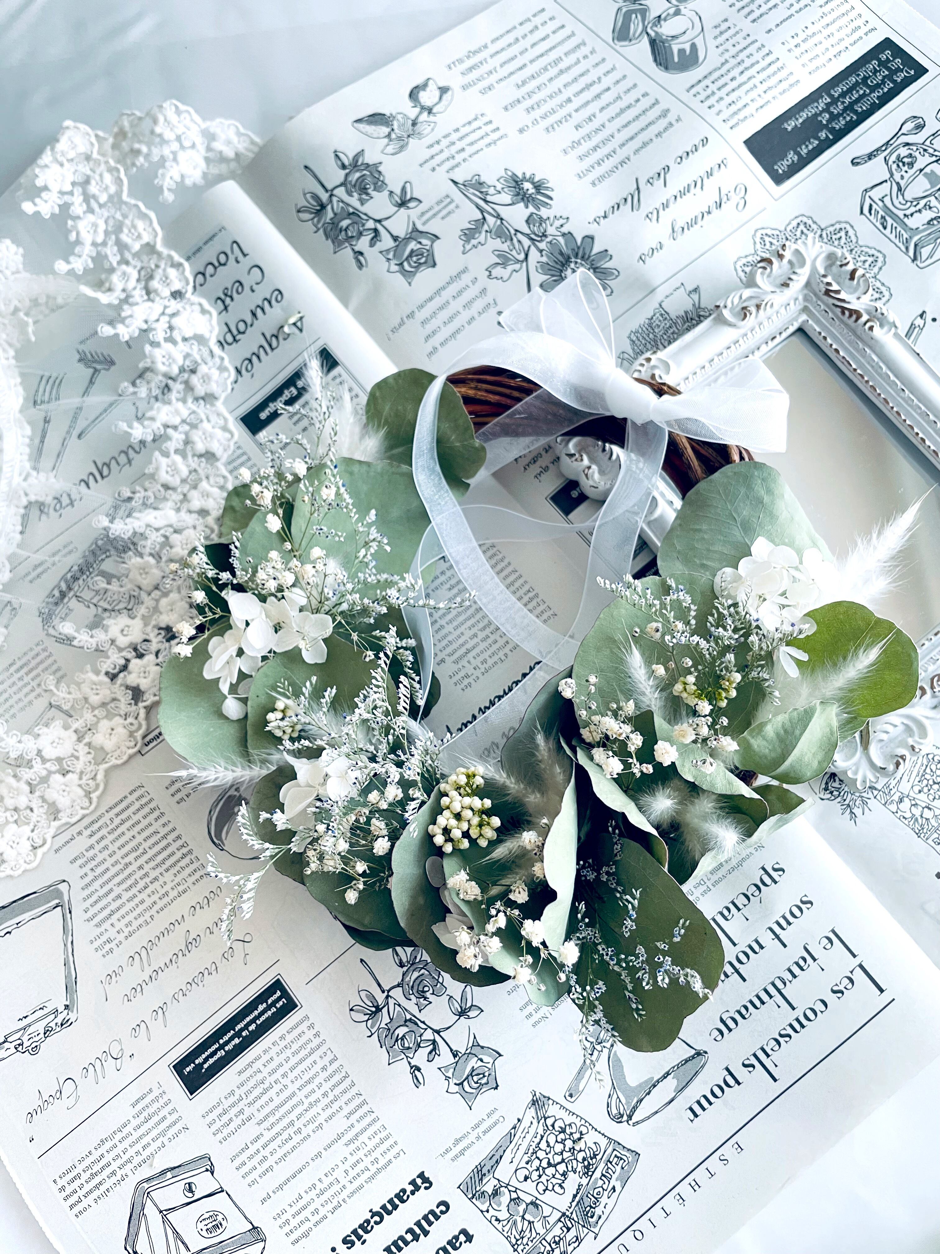 可愛い丸葉のポポラスオーガニックユーカリとかすみ草のお部屋に馴染むナチュラルドライリース