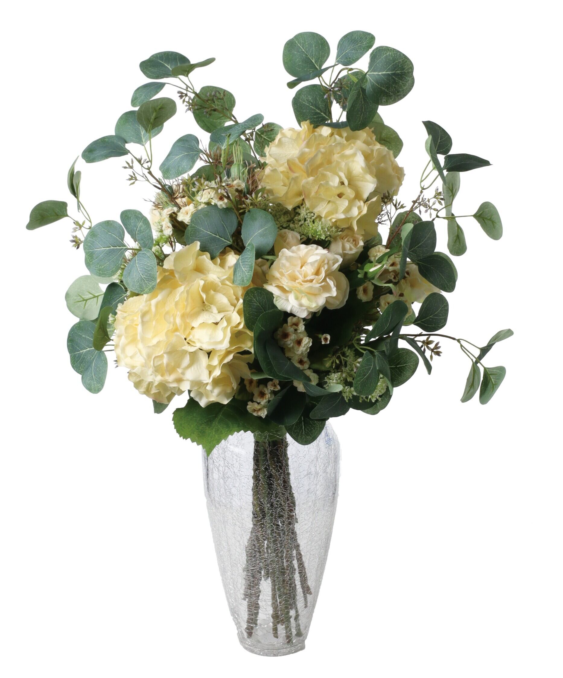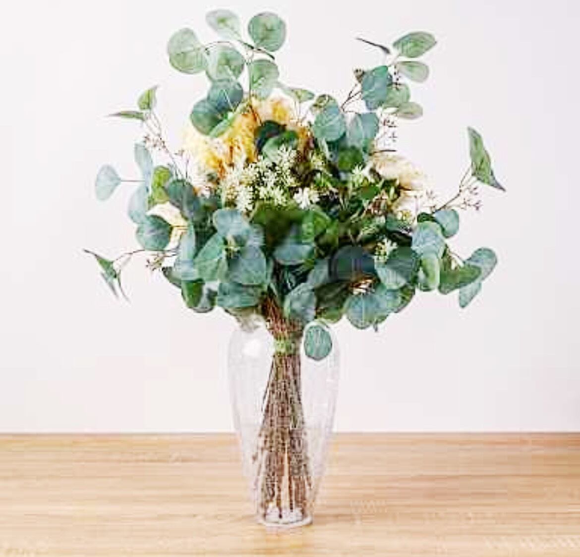 送料無料*祝い札サービス*開店祝い*結婚式*誕生日*アーティフィシャルフラワー造花*丸葉ユーカリのブーケ花器付き