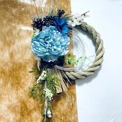 お正月*ブルー芍薬と松と水引きで祝う新年のしめ縄飾り