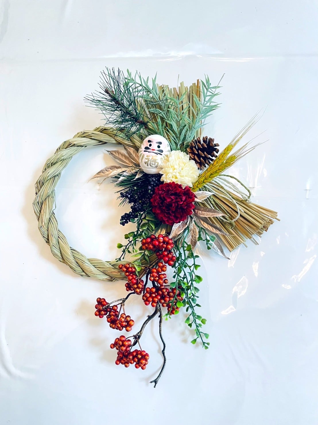 手作りキット*『早割お正月2022』 お正月*松と紅白マム達磨さんで祝う新年のしめ縄飾り