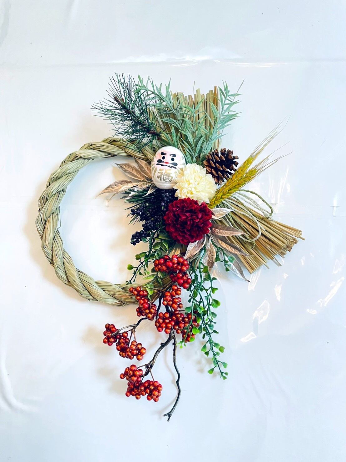 『早割お正月2023』 お正月*松と紅白マム達磨さんで祝う新年のしめ縄飾り