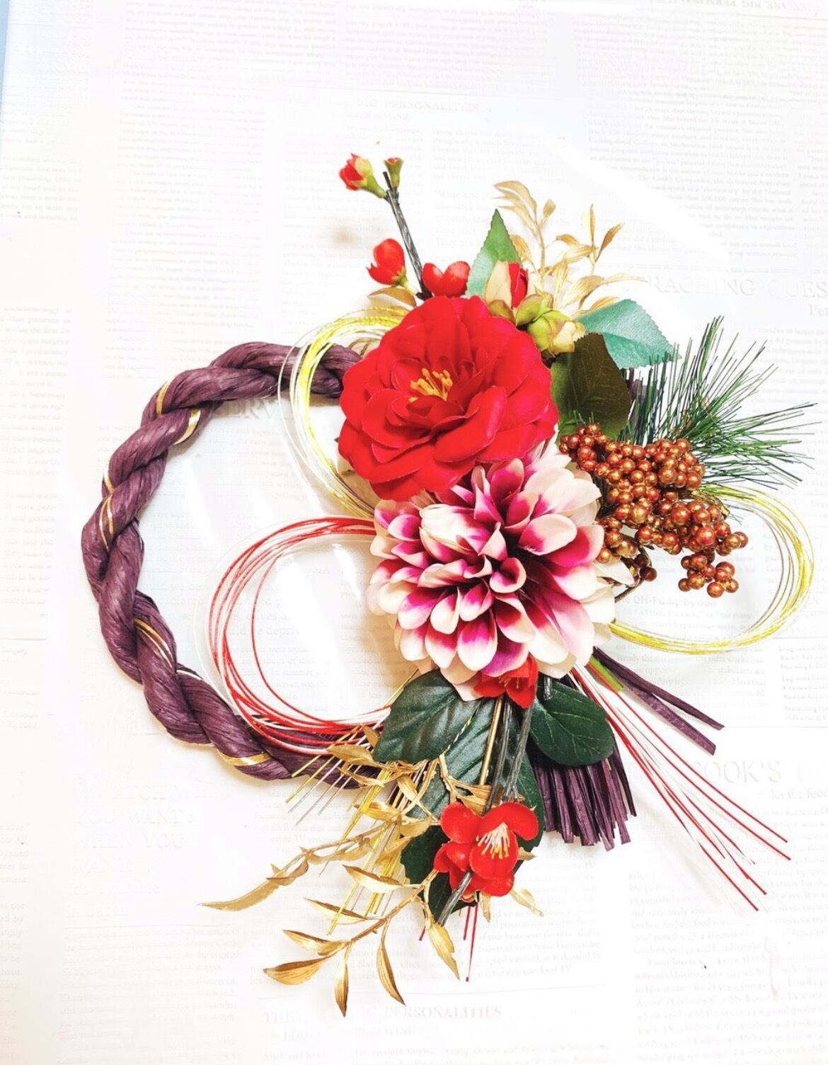 早割お正月2022年*美ダリアと麗椿の華やかなお正月しめ縄飾り