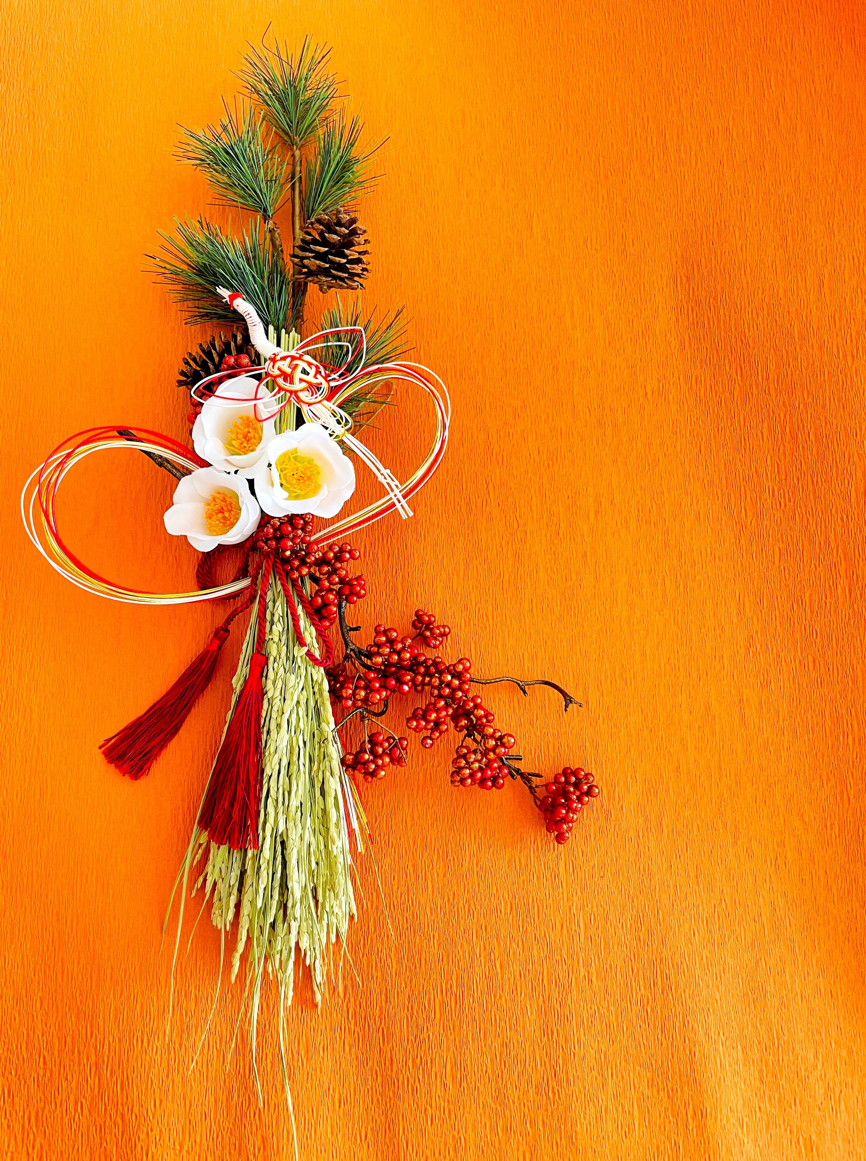 お正月*稲穂と松、鶴舞う美しい椿で祝う新年のお飾り