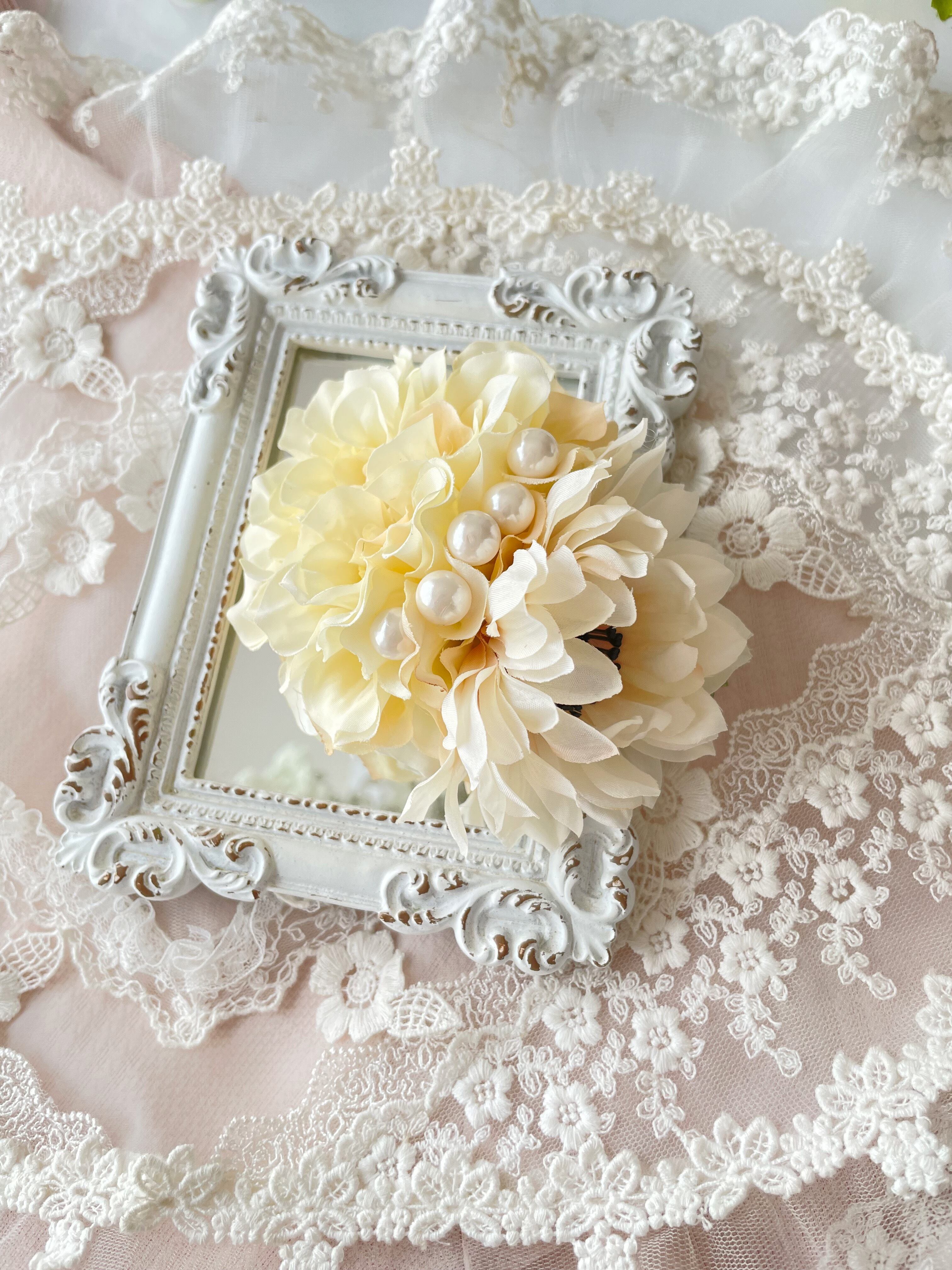 ダリアとアネモネのパールを添えた華やかなコサージュ*髪飾り2wayタイプ