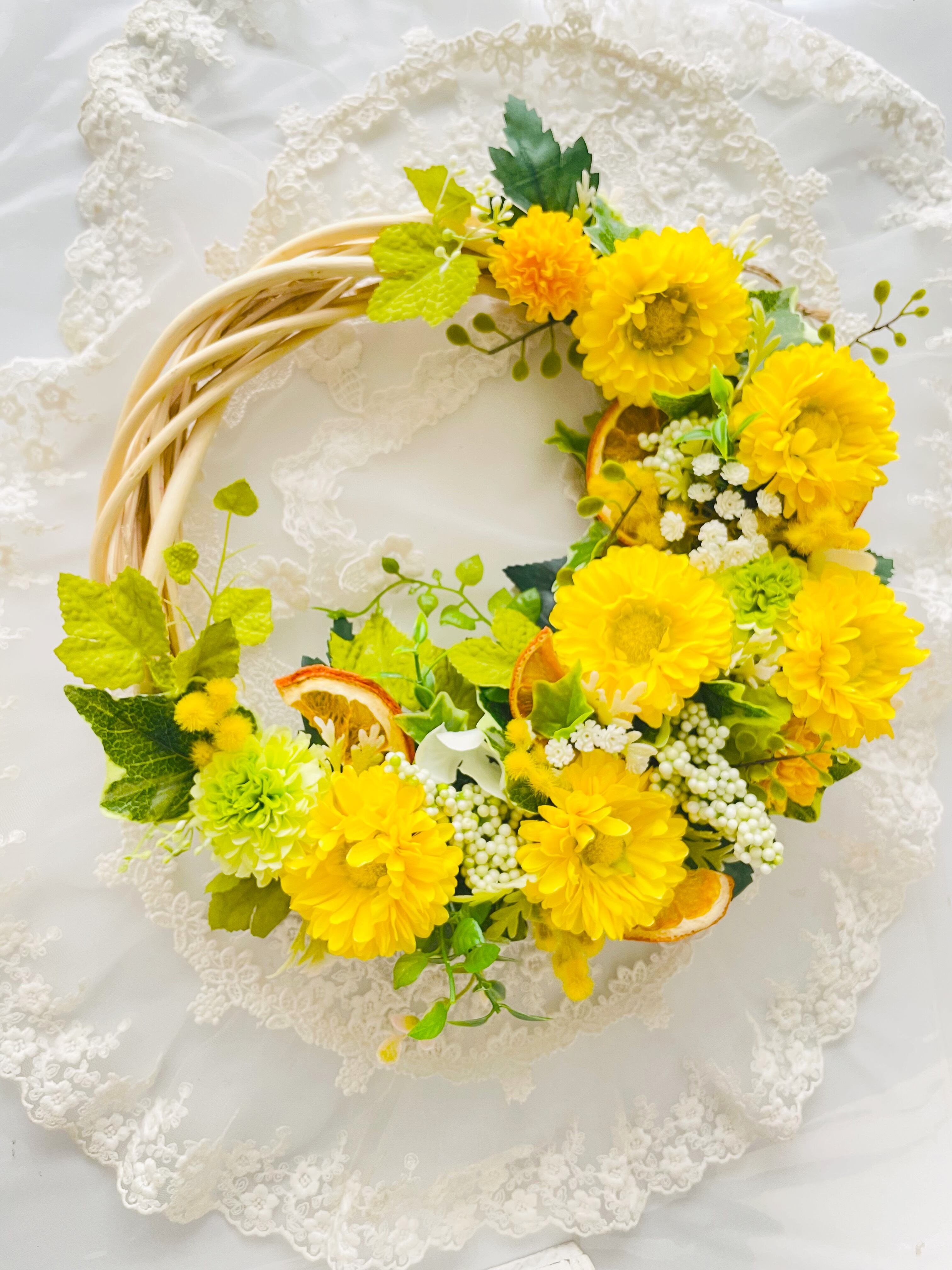 春を告げる優しい黄色のアーティフィシャルフラワーリース