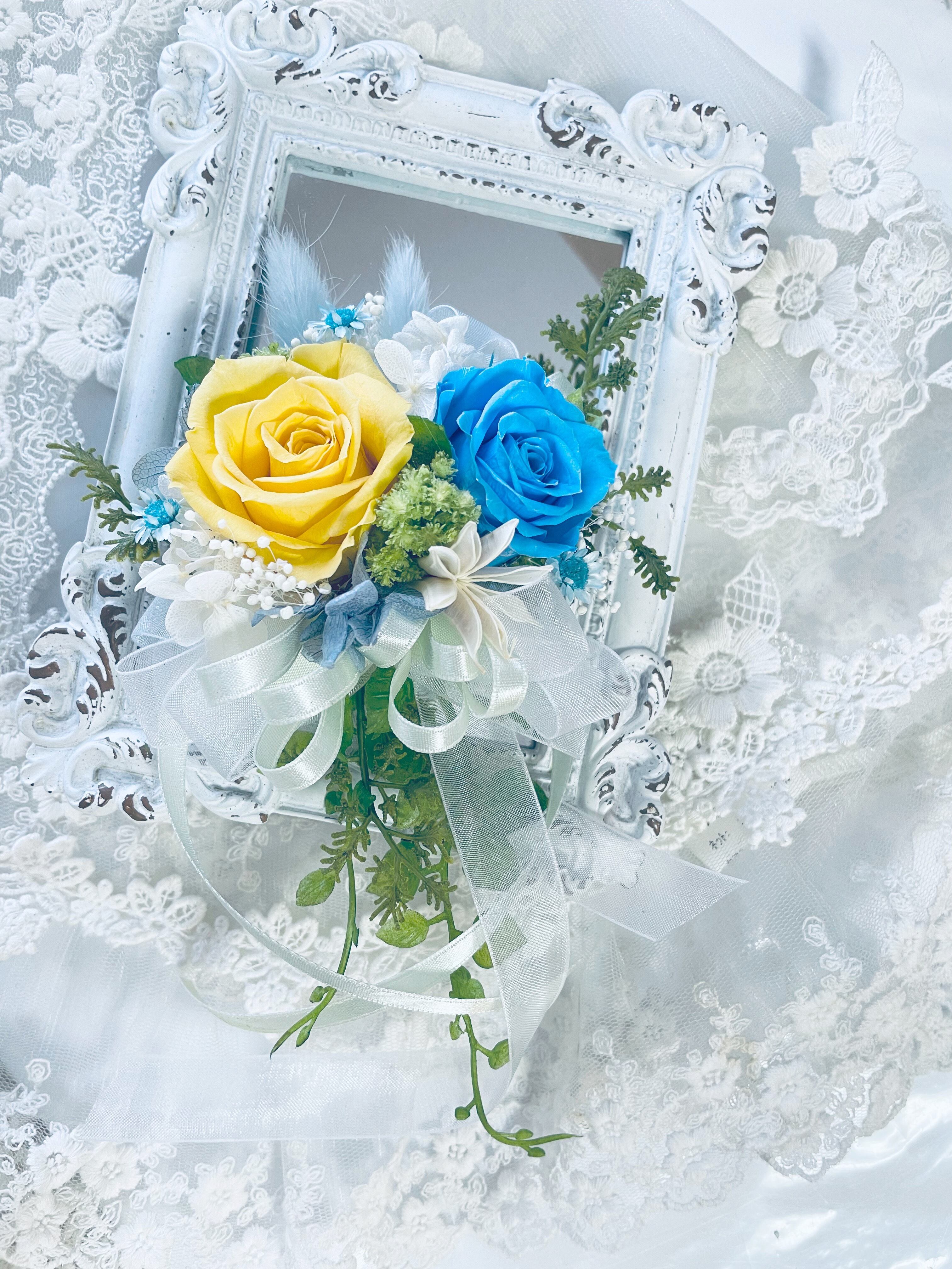 卒業*入学*結婚式*華やか日のプリザーブドローズの爽やかなコサージュ