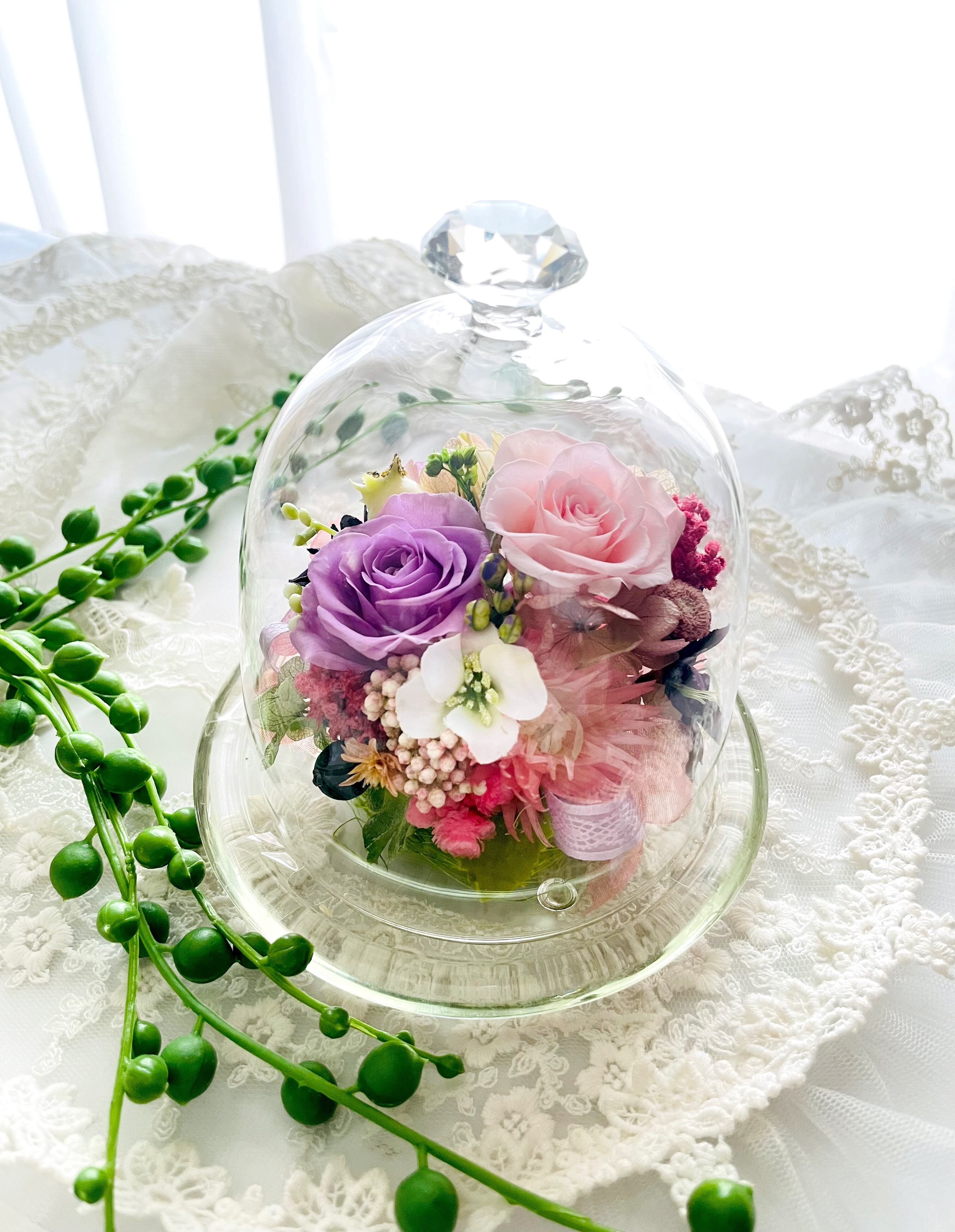 無料ラッピングあり*冠婚葬祭*心に残るフラワーギフト*誕生日*結婚*永遠に咲く綺麗なガラスドームプリザーブドフラワー*