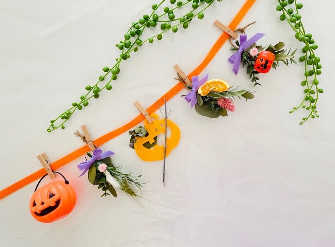 ドライユーカリなどを入れてハロウィーンガーランドをデザインしました。