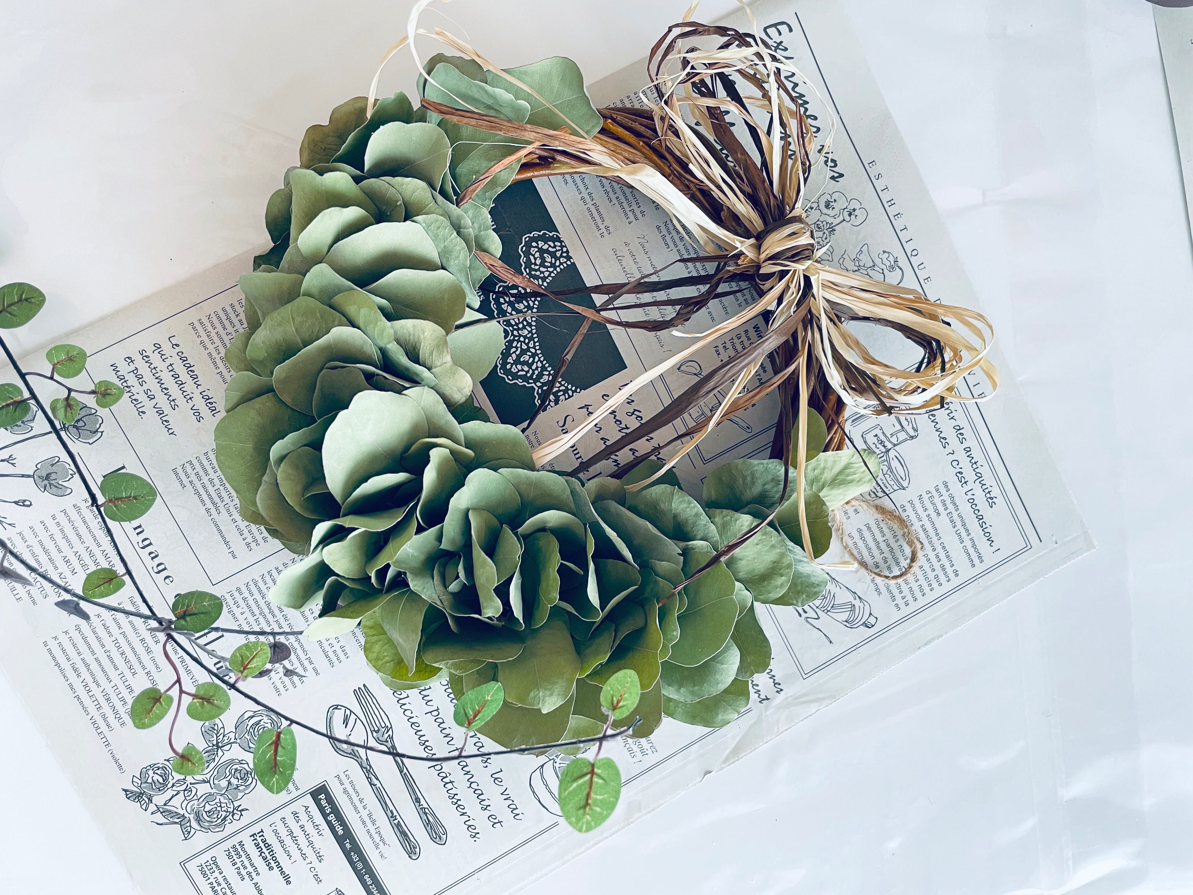 特別価格*丸葉が可愛いオーガニックユーカリポポラスのお部屋に馴染むナチュラルドライリース*直径23センチ