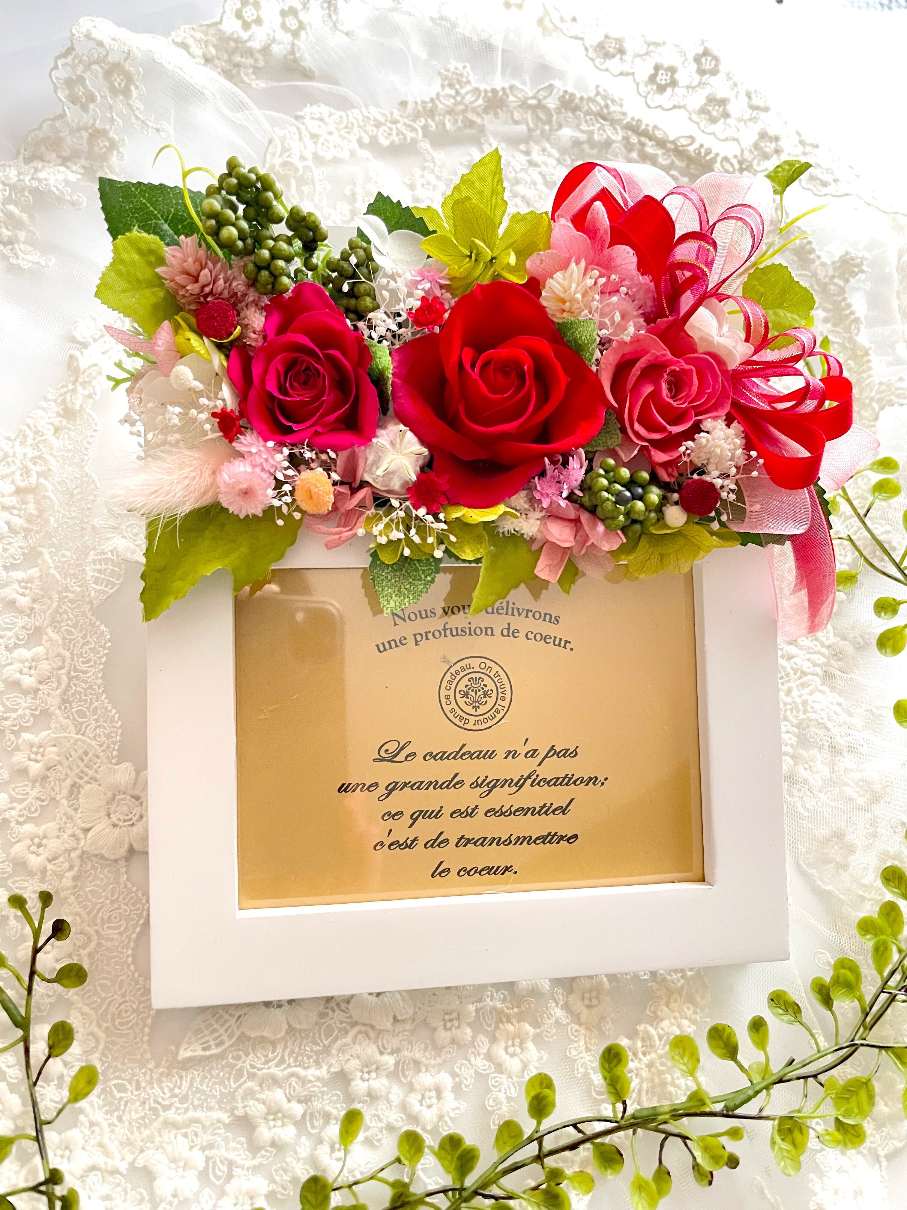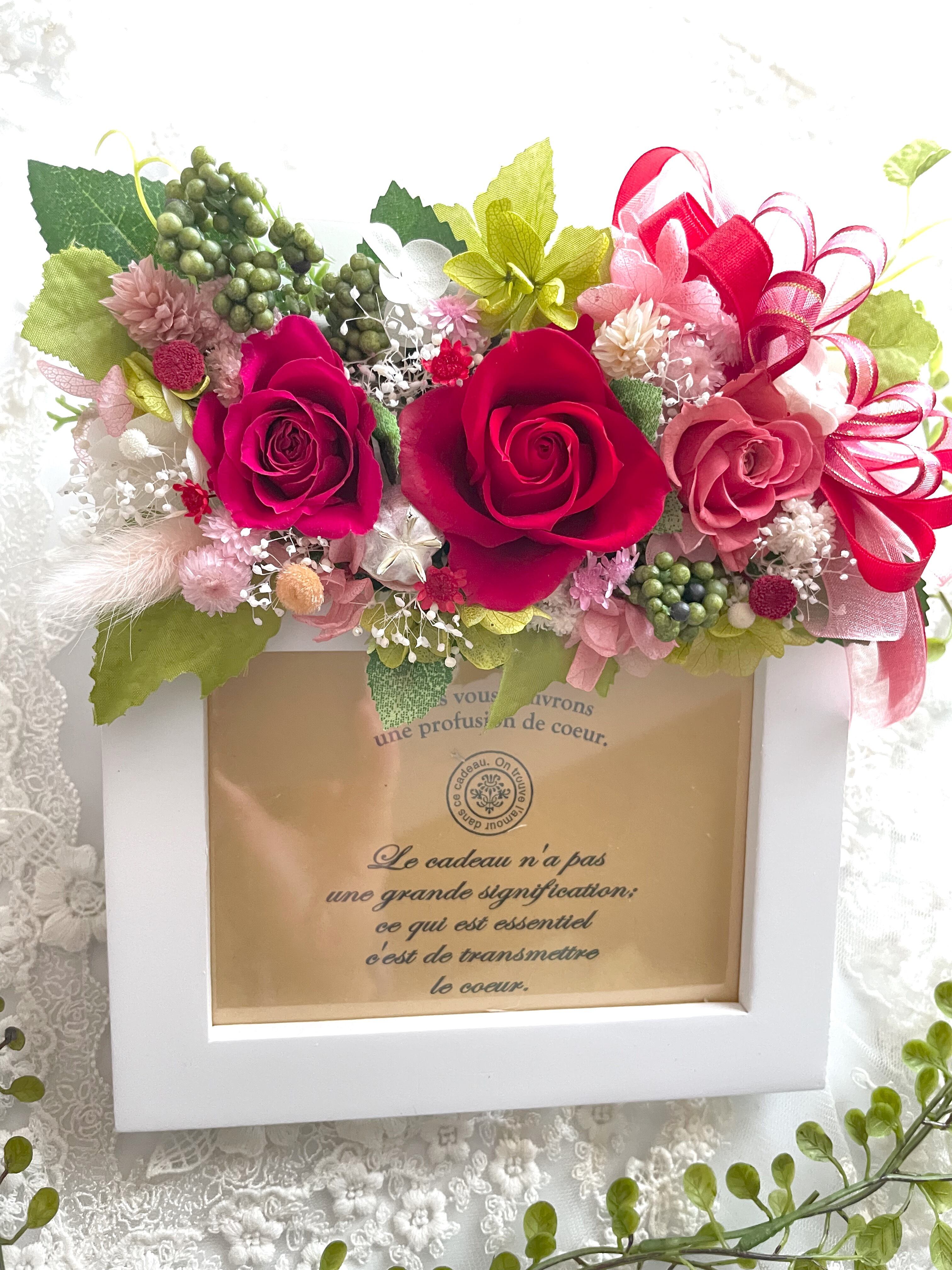 ラッピング無料*フラワーギフト*想い出に優しく咲くプリザーブドフラワーフォトフレーム*縦横飾れる2way写真立て