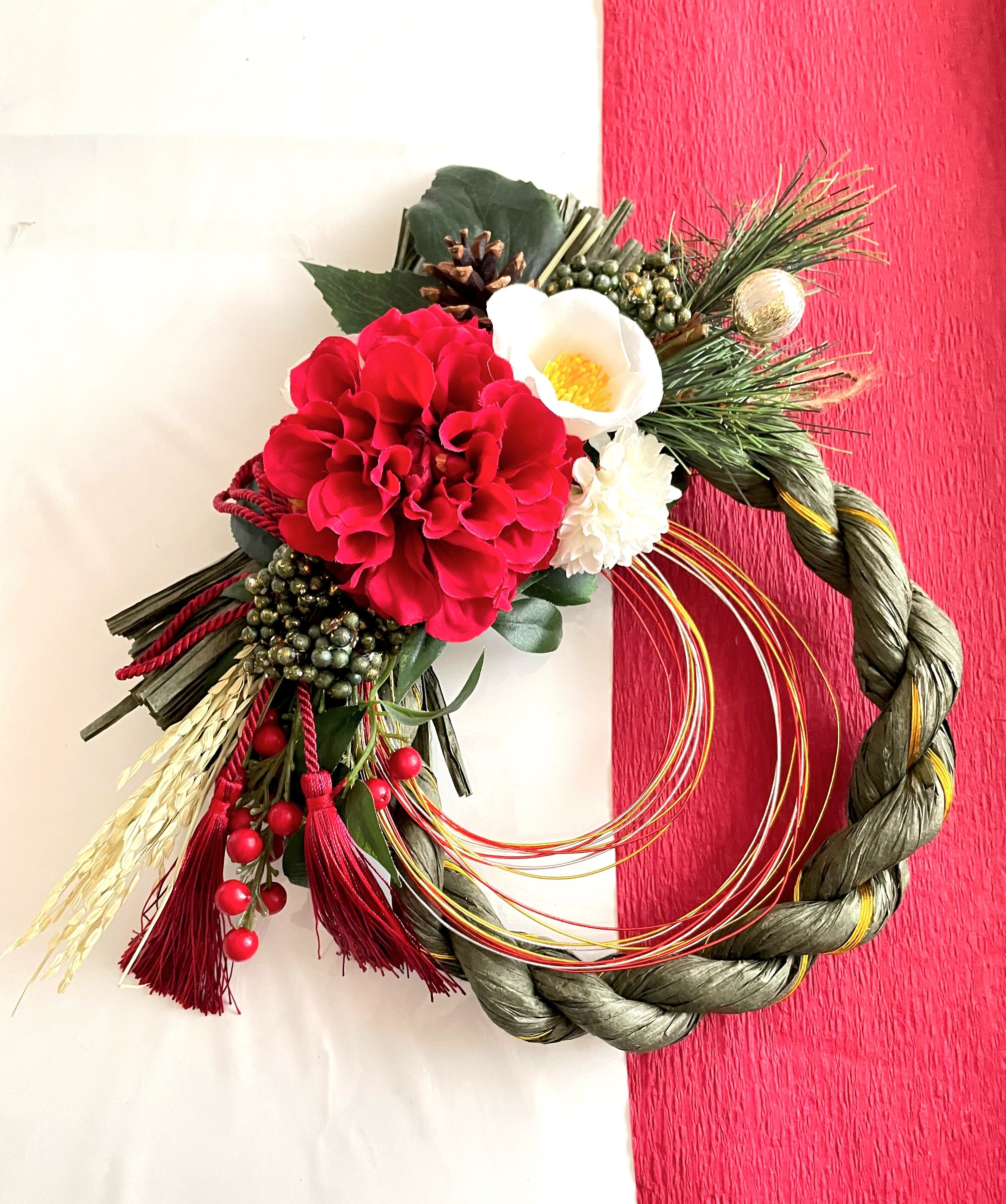『早割お正月2023』お正月*新色しめ縄と美しいダリアで祝う新年しめ縄飾り
