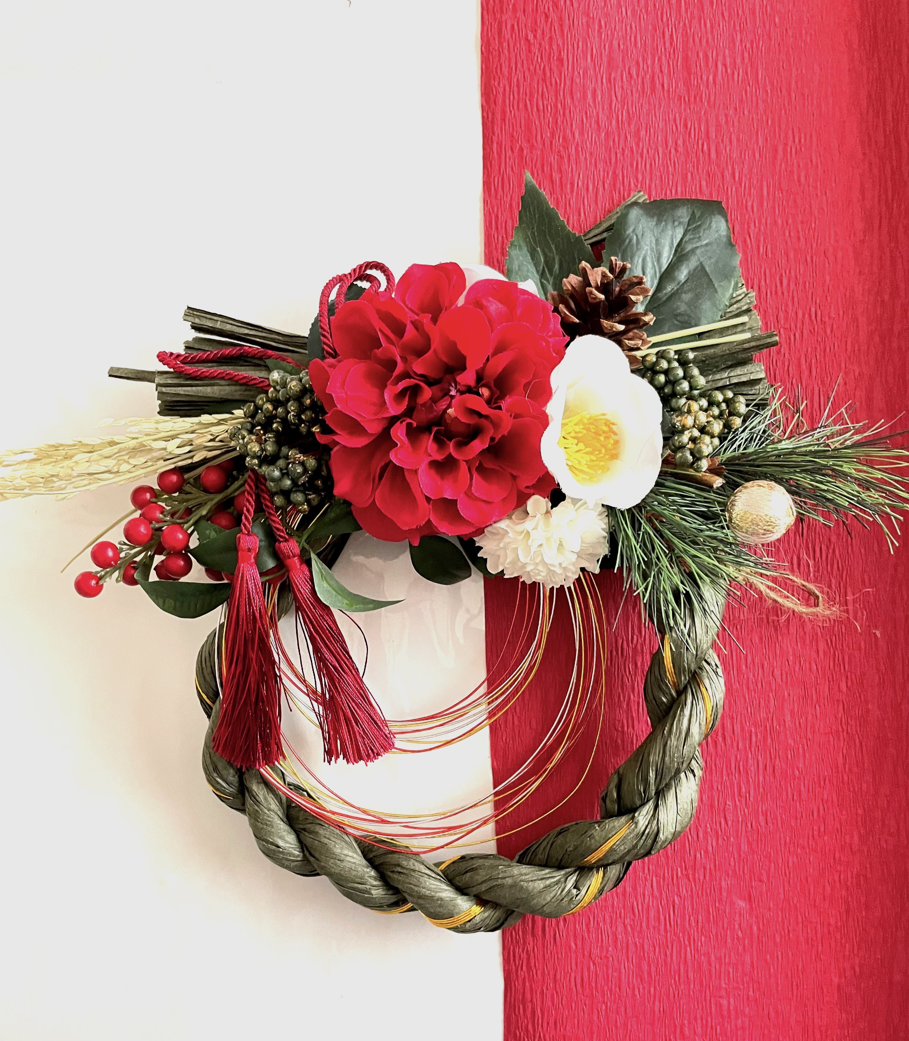 高級アーティフィシャルフラワーを使用したオリジナル専属デザイナーのしめ縄飾りで年神様という新年の神様をお迎えしましょう*・゜゚・*:.。..。.:*・