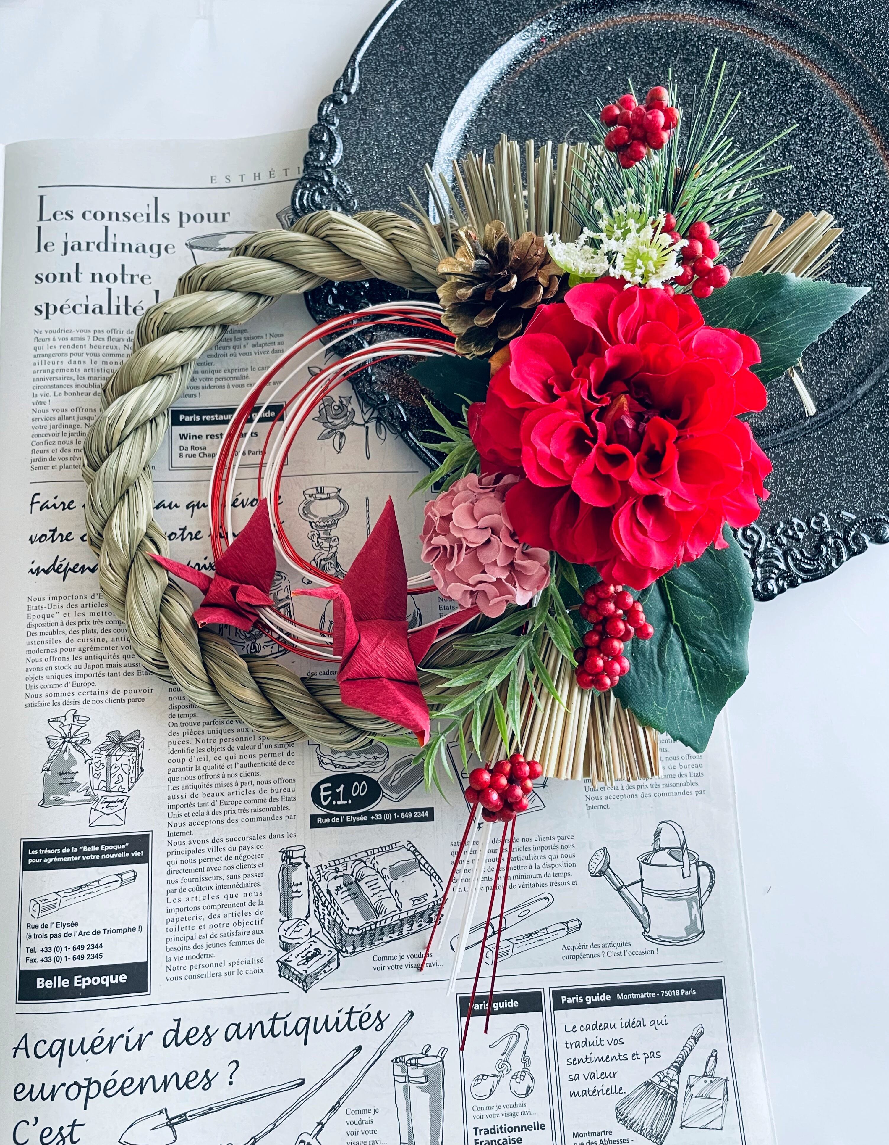 高級アーティフィシャルフラワーを使用したオリジナル専属デザイナーのしめ縄飾りで年神様という新年の神様をお迎えしましょう*・゜゚・*:.。..。.:*・
