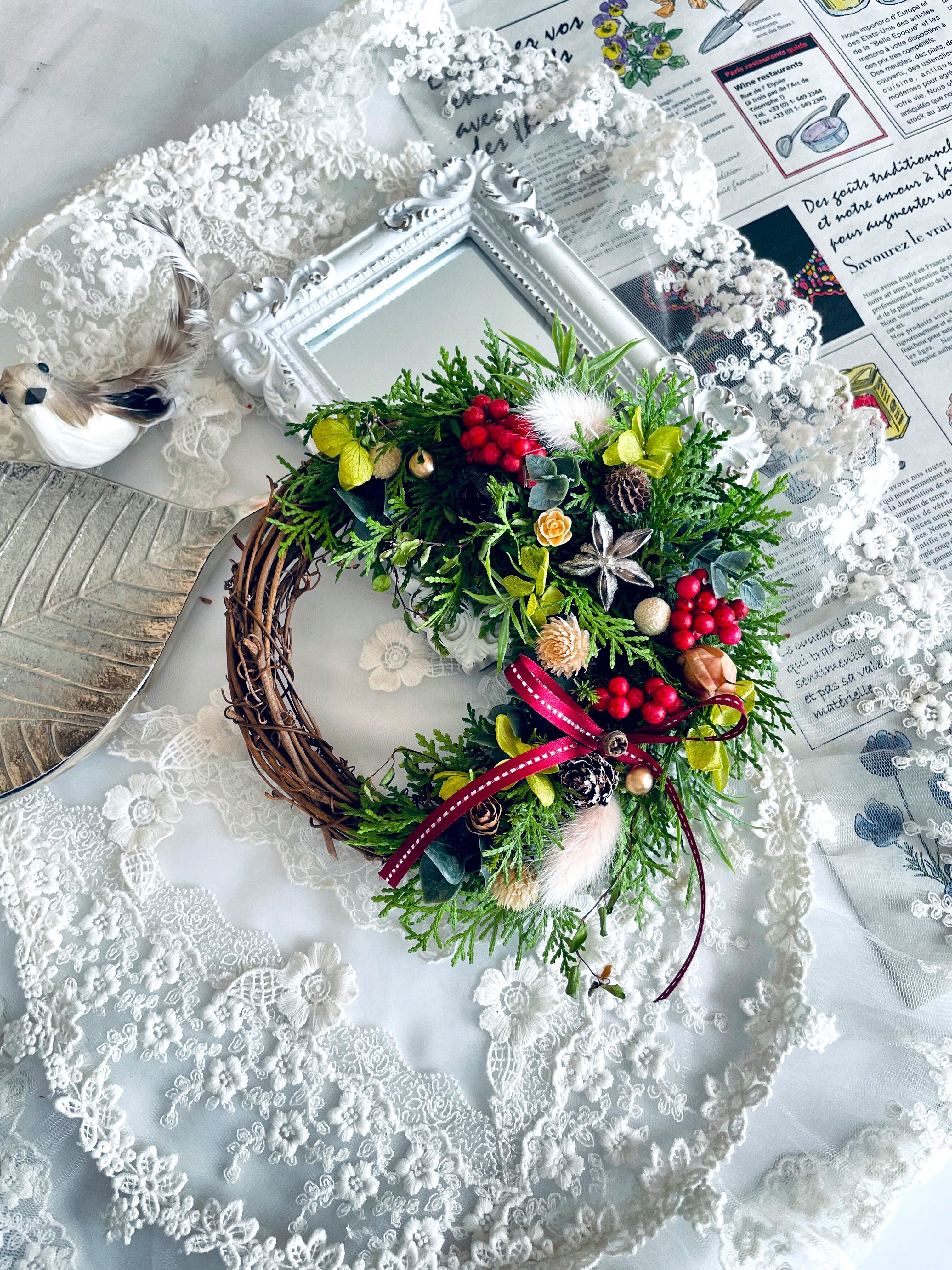 癒しの空間の彩りにナチュラルな森のクリスマスリースをデザインしました。