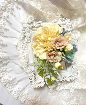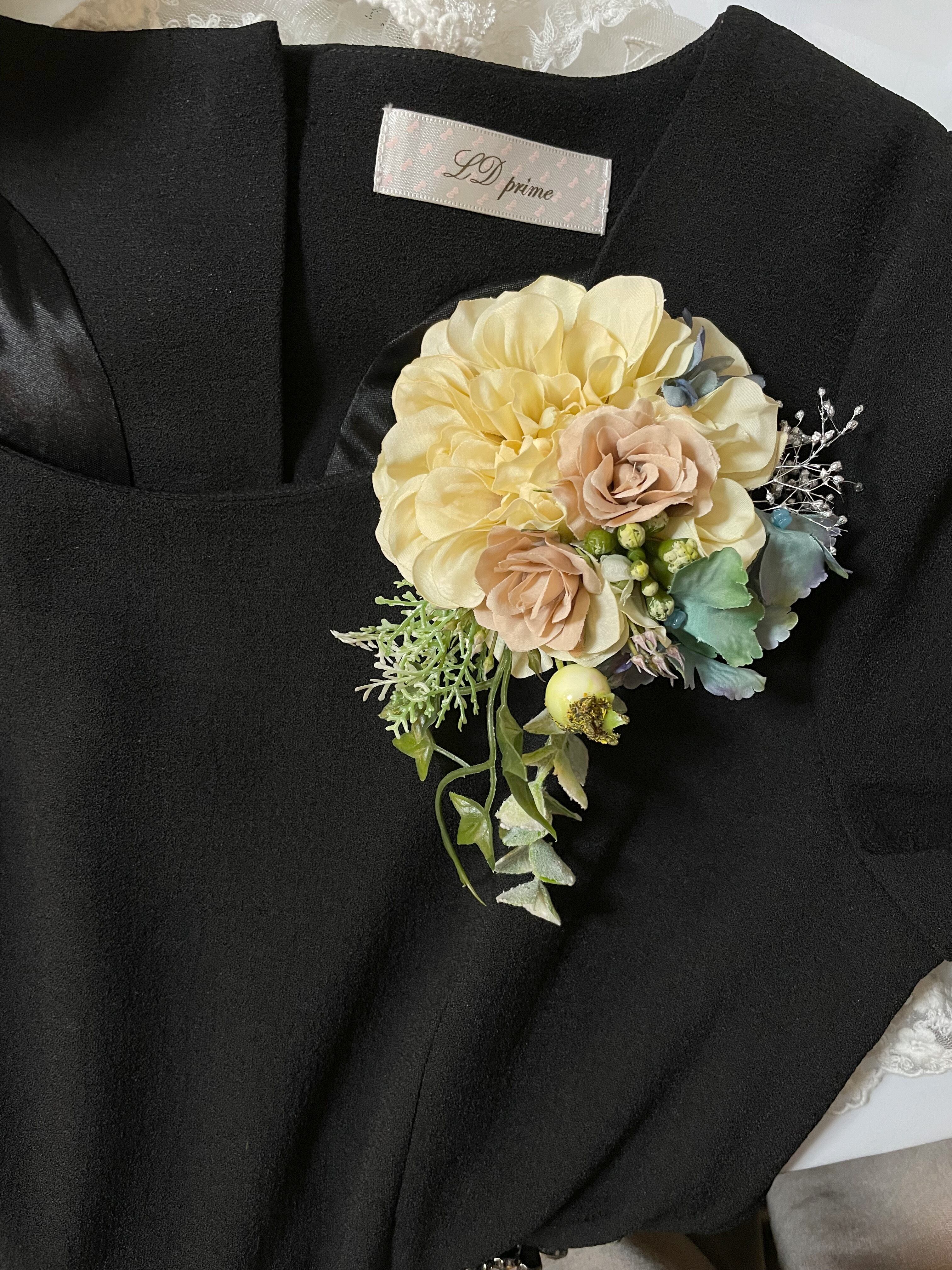 新作コサージュ*ダリア薔薇とかすみ草ナチュラルコサージュ