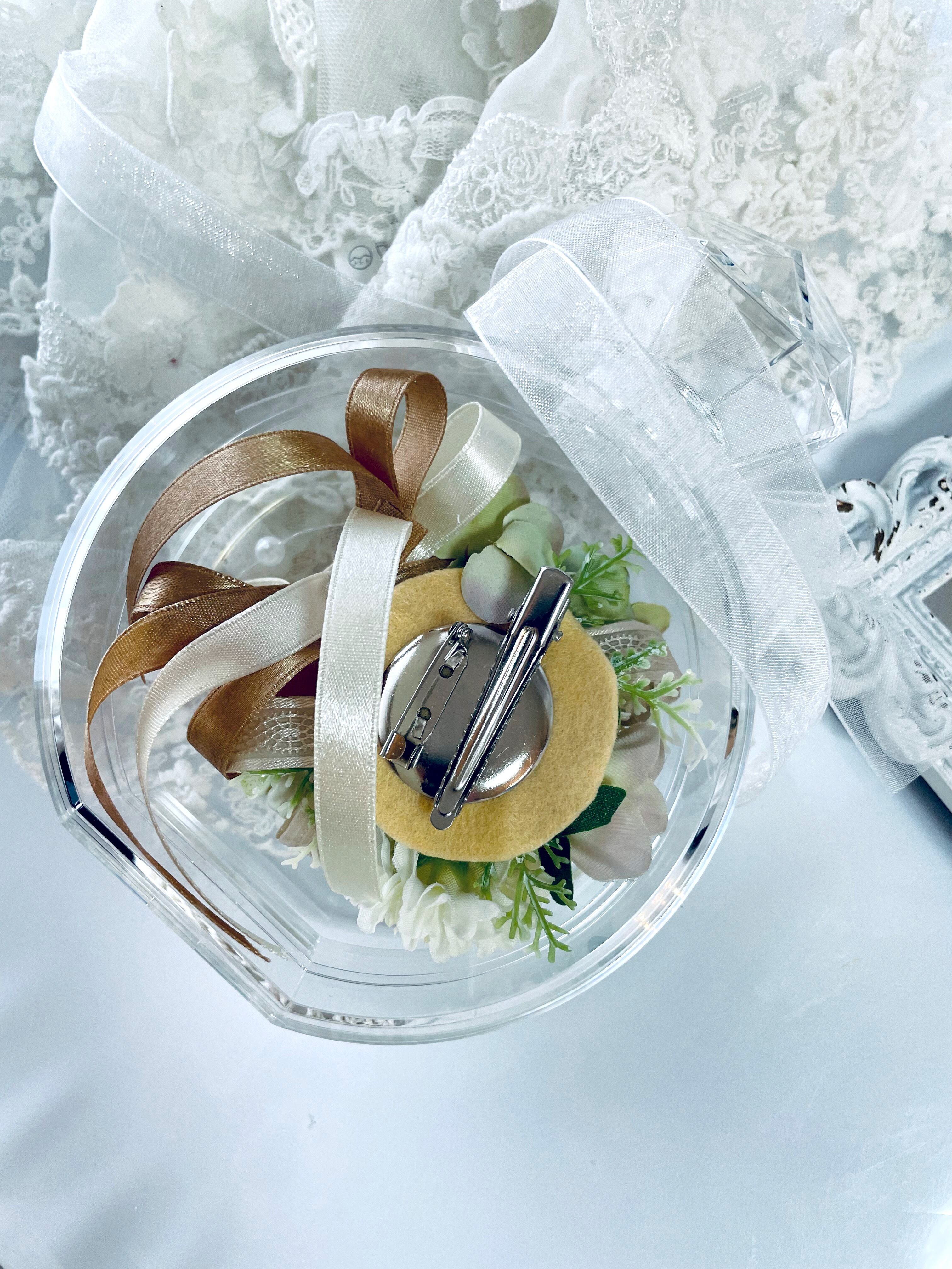 今年新作の香水瓶のような形のアクリルケースにアーティフィシャルフラワー、高級造花のコサージュを入れてギフト用にデザインしました゜*:.。..。.:**:.。. :*・゜*:.。..。.:**:.。.