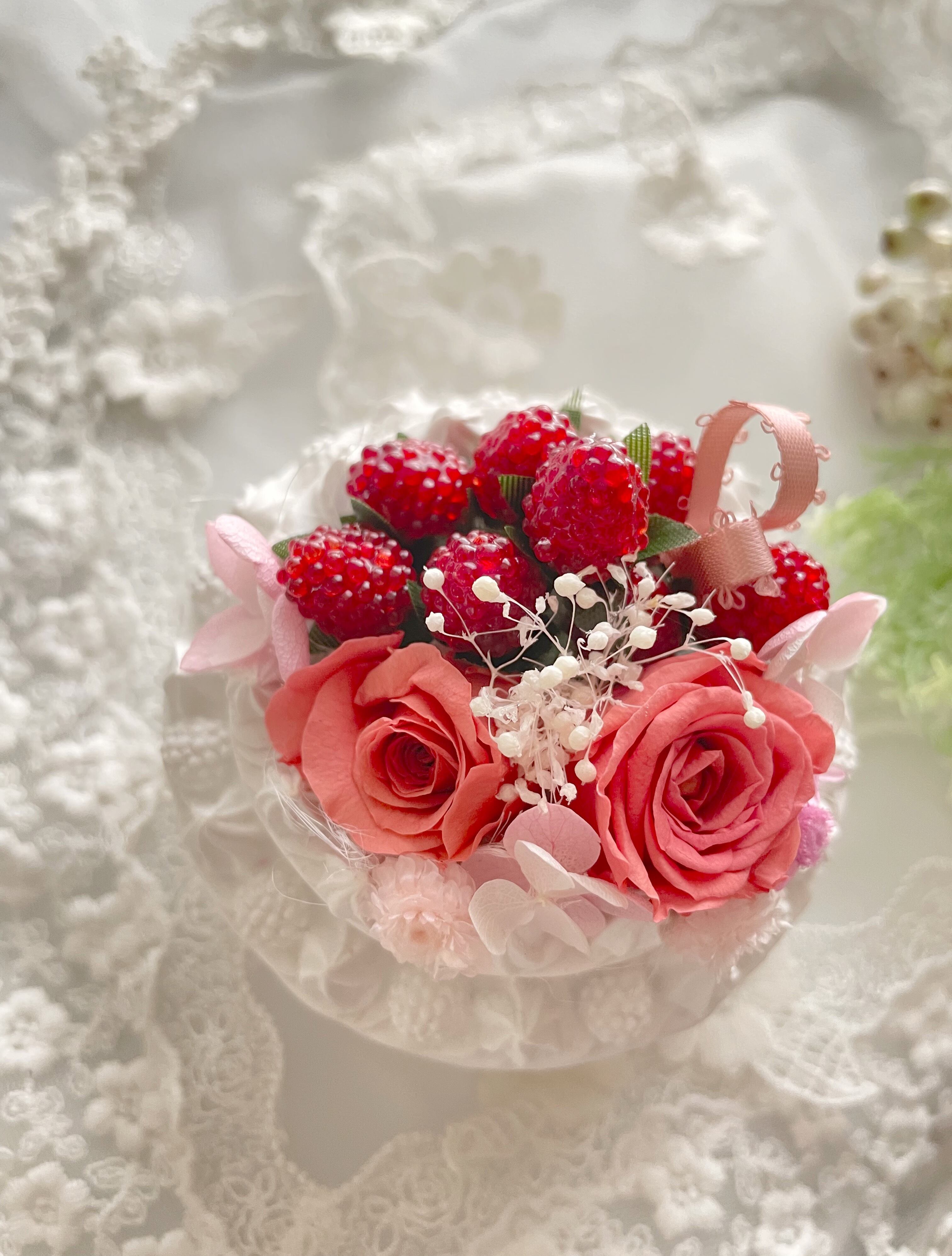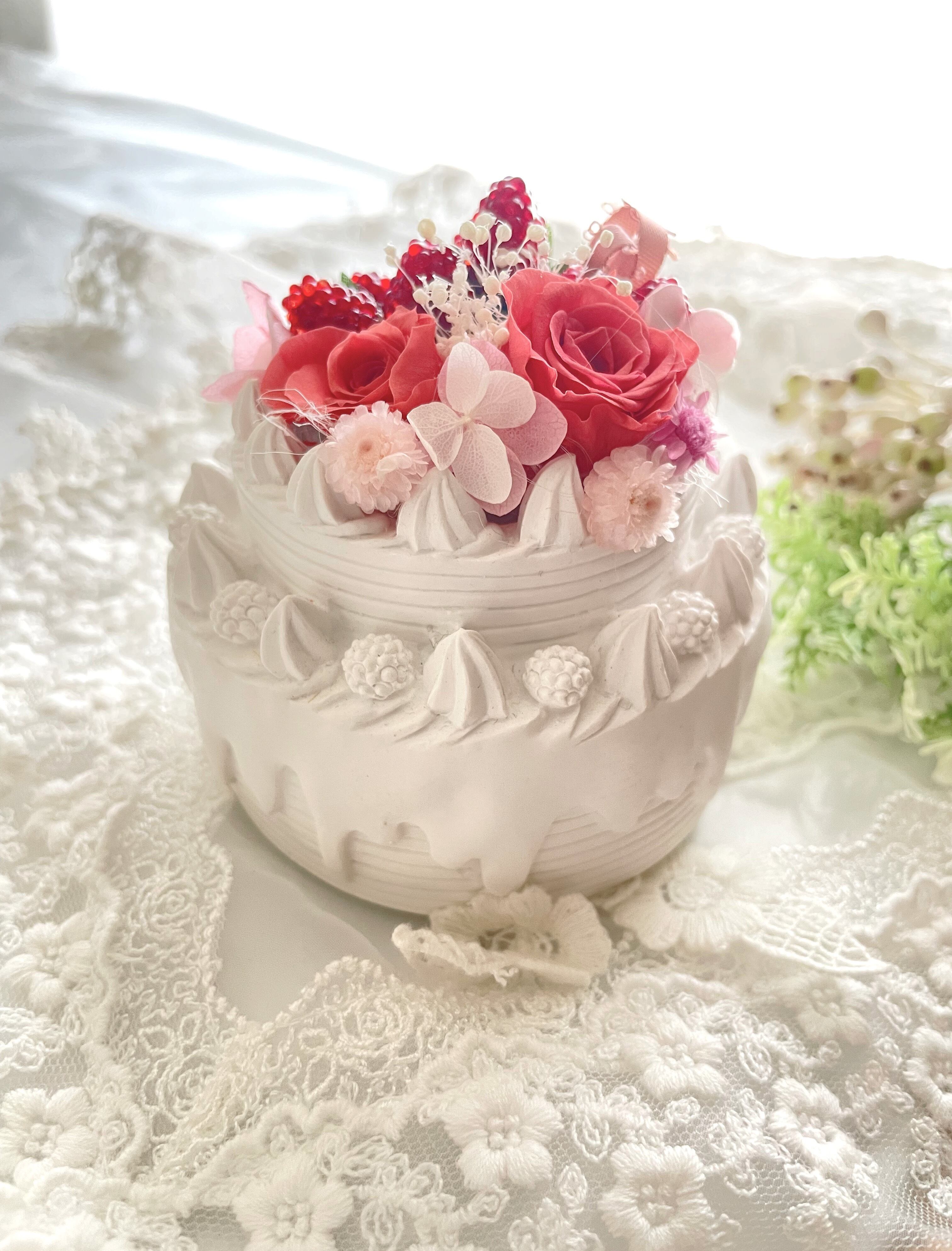 母の日*誕生日*お祝い*フラワーギフト*可愛いケーキのプリザーブドフラワーアレンジ*薔薇の色変更可*無料ラッピングあり