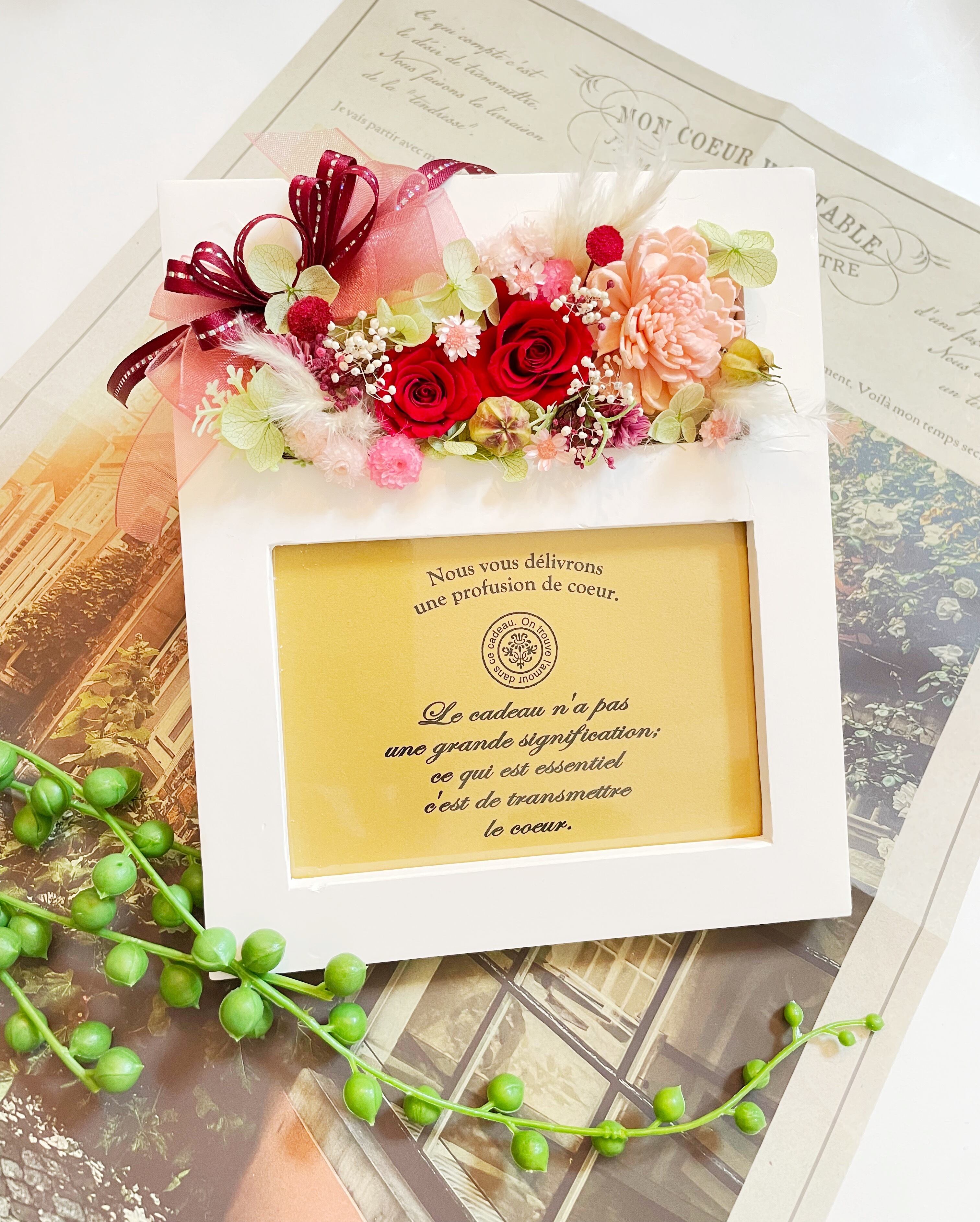 フラワーギフト*想い出に優しく咲く可愛いピンクと赤薔薇のプリザーブドフラワーフォトフレーム*縦横飾れる2way写真立て