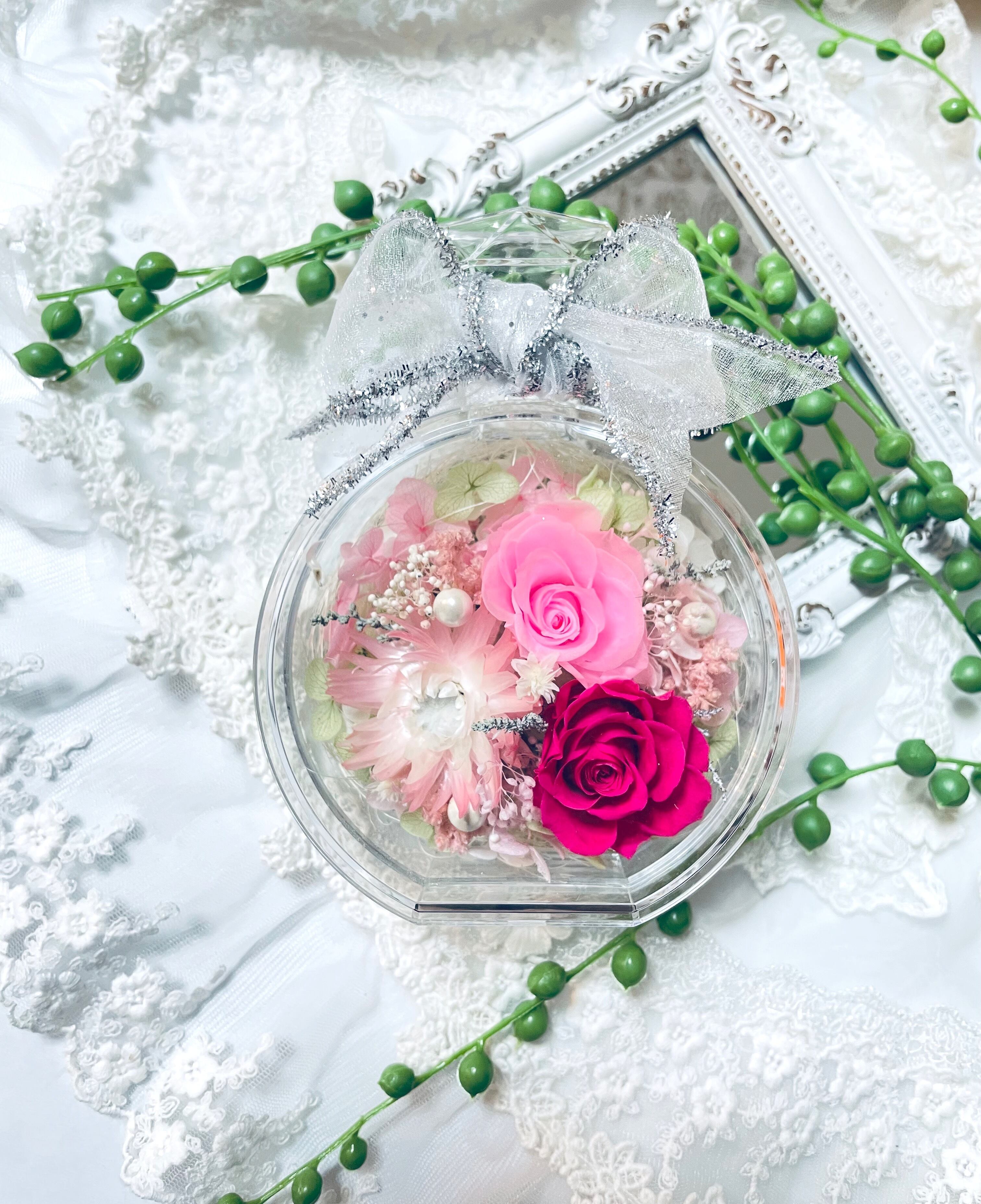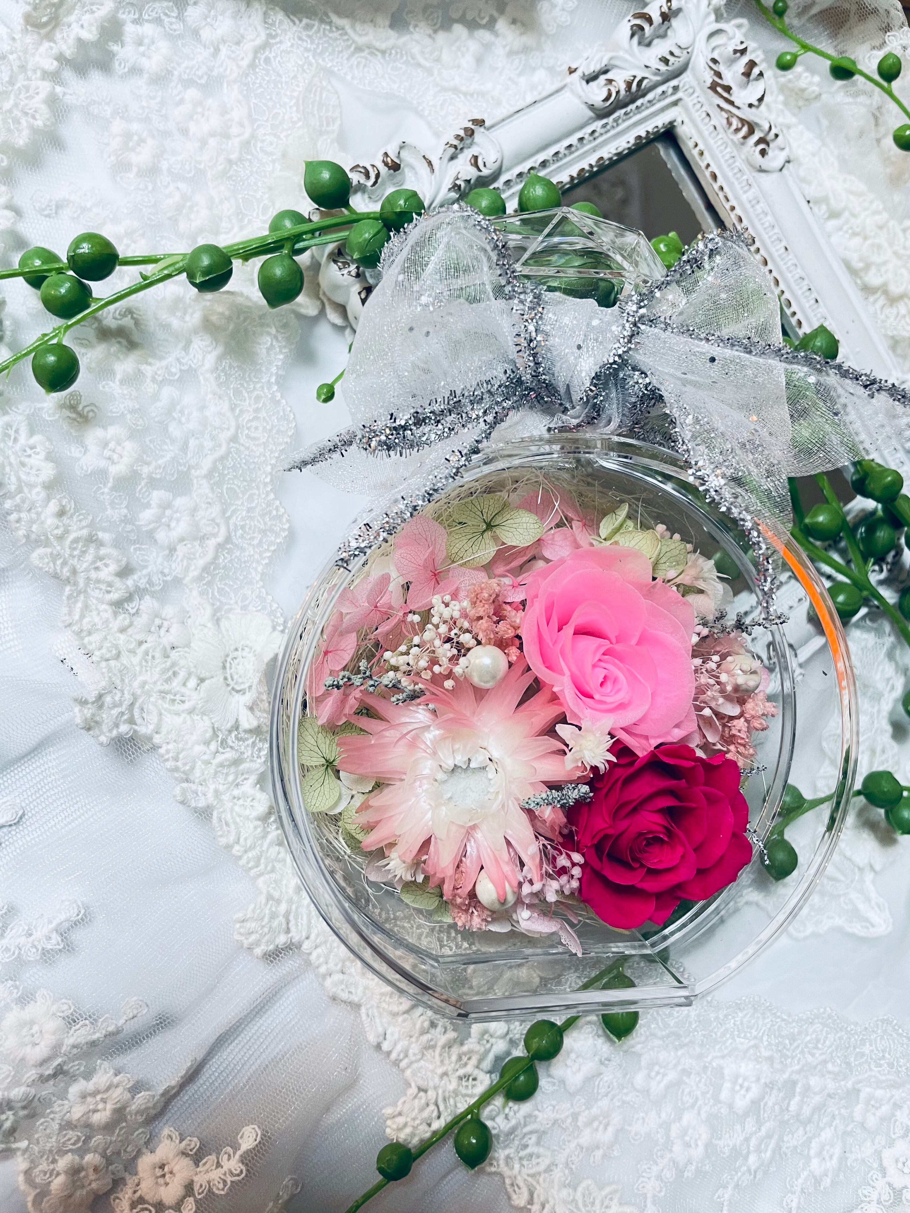 特別価格*新作*お写真に飾る香水瓶のプリザーブトフラワーアレンジ*ラッピング無料