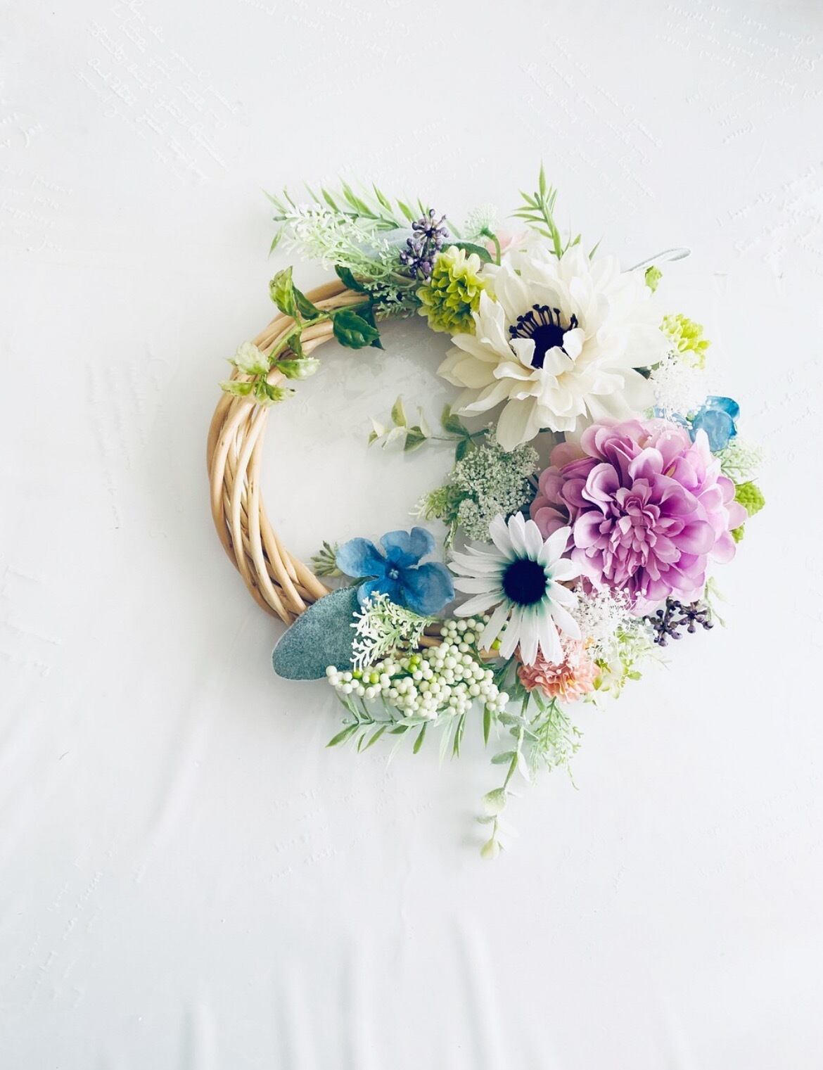 綺麗な花材で作るアーティフィシャルフラワーリースアレンジメントキットはいかがでしょうか。