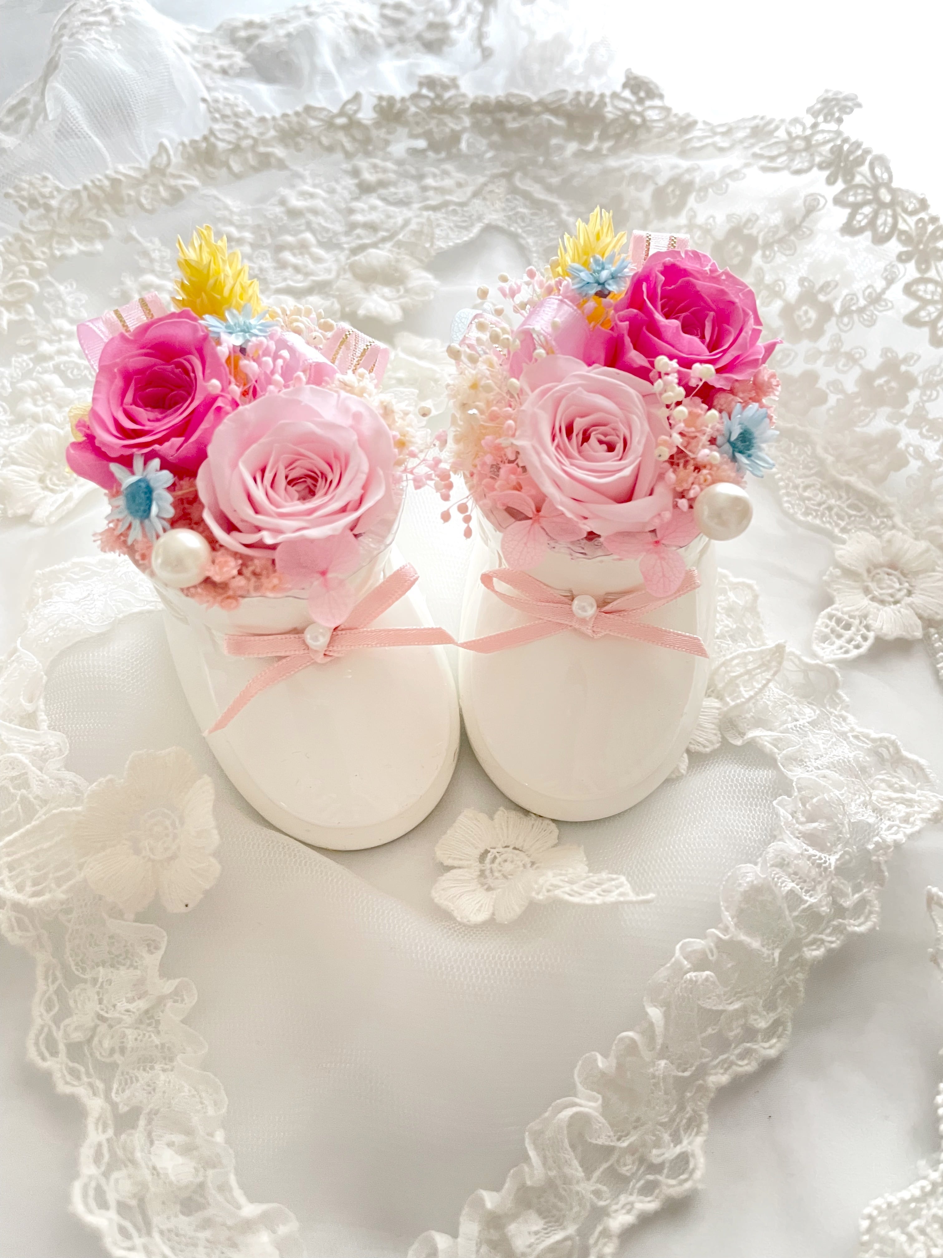 出産祝い*結婚祝い*プリザーブドフラワーベビーシューズの贈り物*無料ラッピング*お色変更可