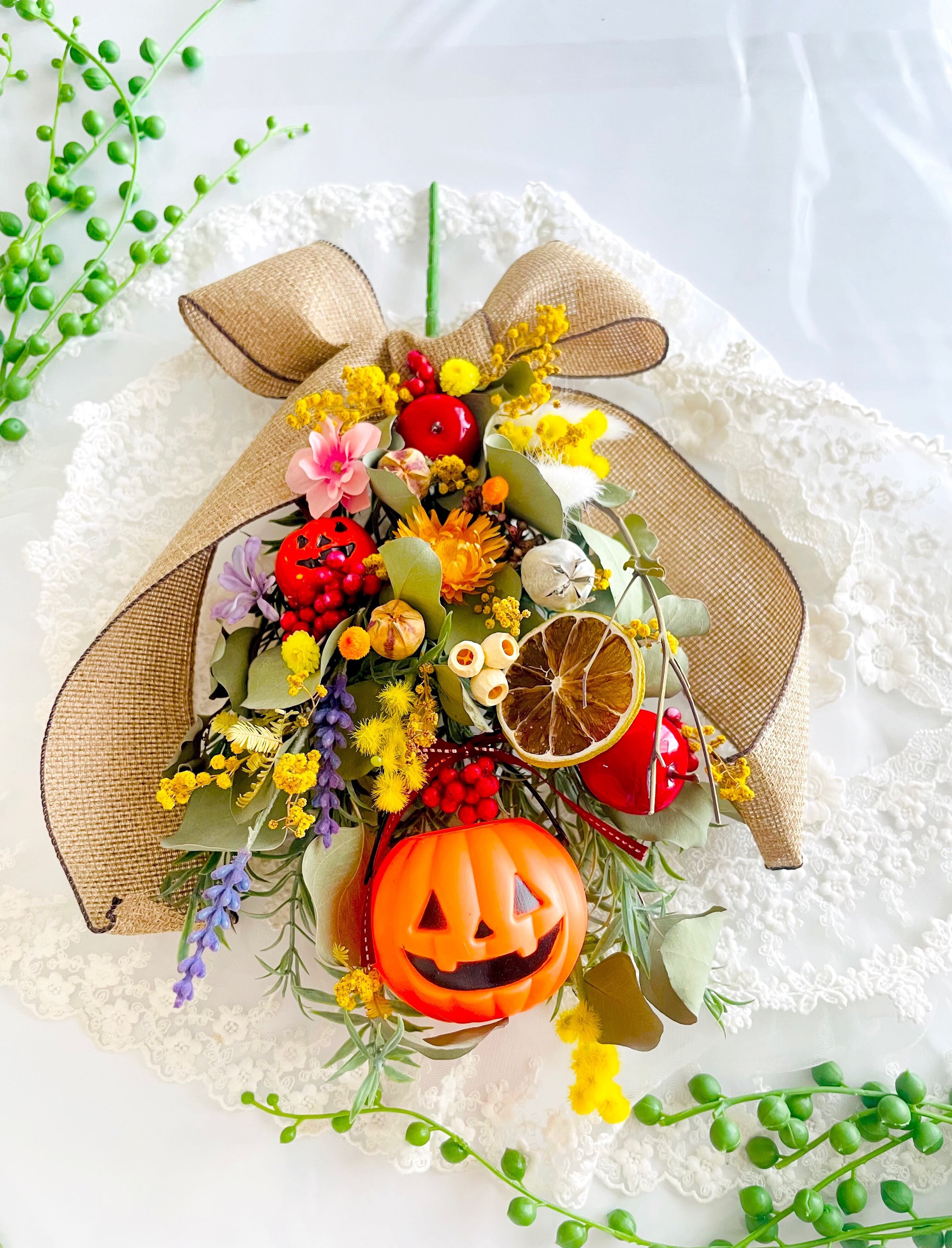 新作*イロトリドリ秋の楽しいハロウィーンスワッグ&テーブルアレンジ2way