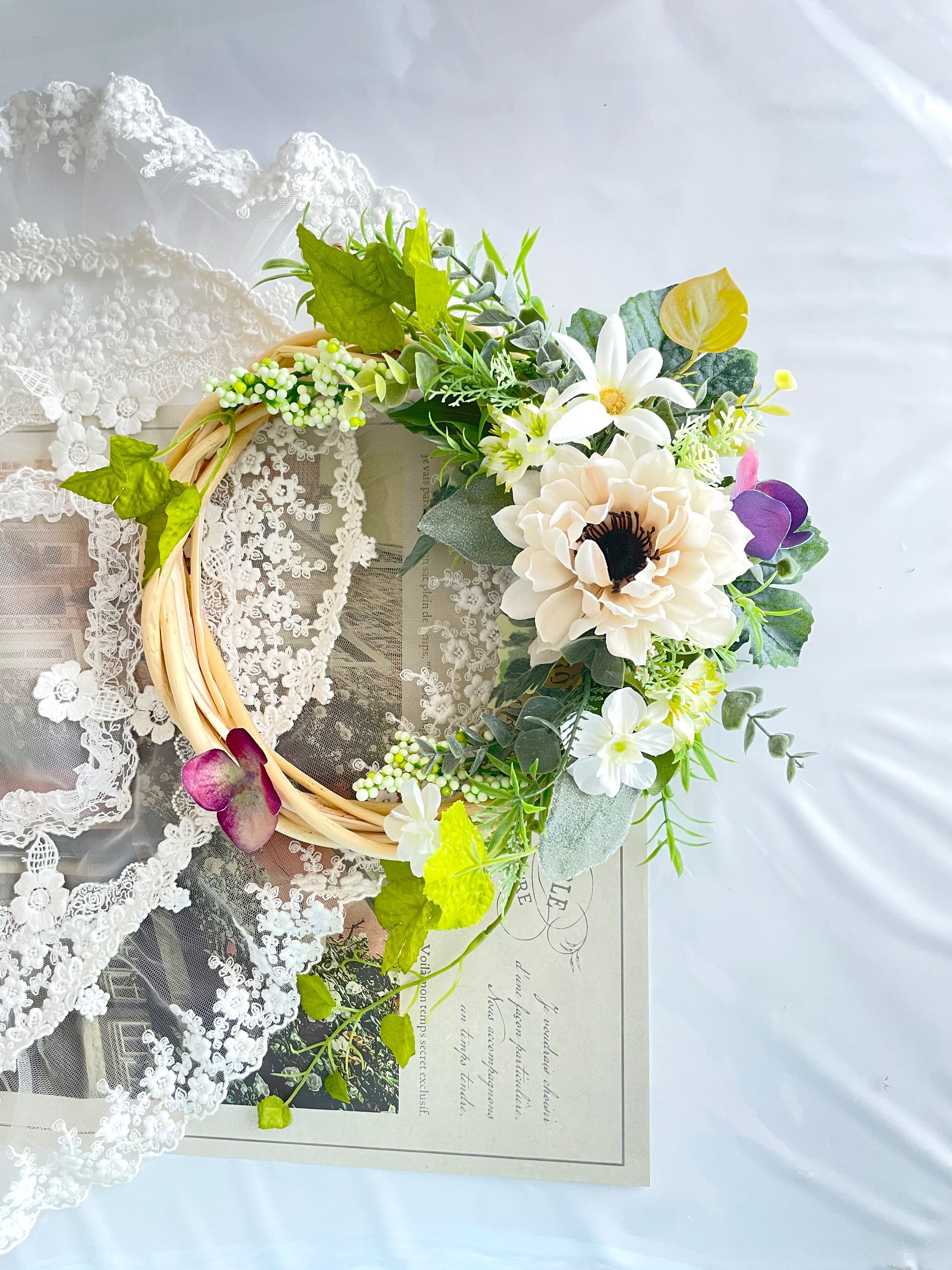 手作りキット*制作動画あり*優しいグリーンとアネモネのリース*直径25センチ*アーティフィシャルフラワー*造花