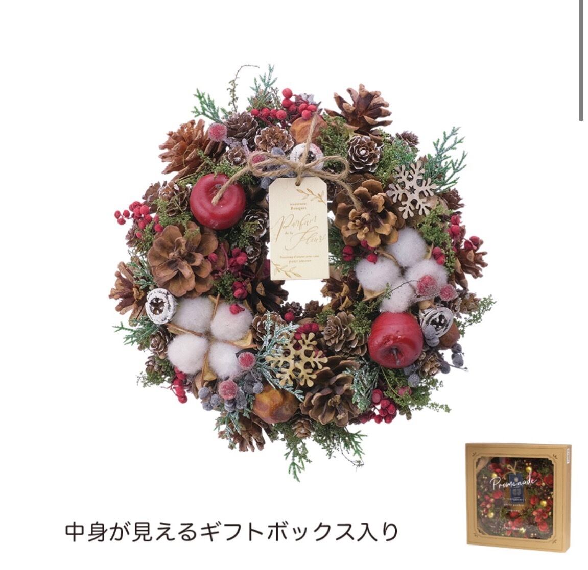BOX無料*聖夜を彩る可愛い木の実と林檎コットンフラワーのクリスマスリース