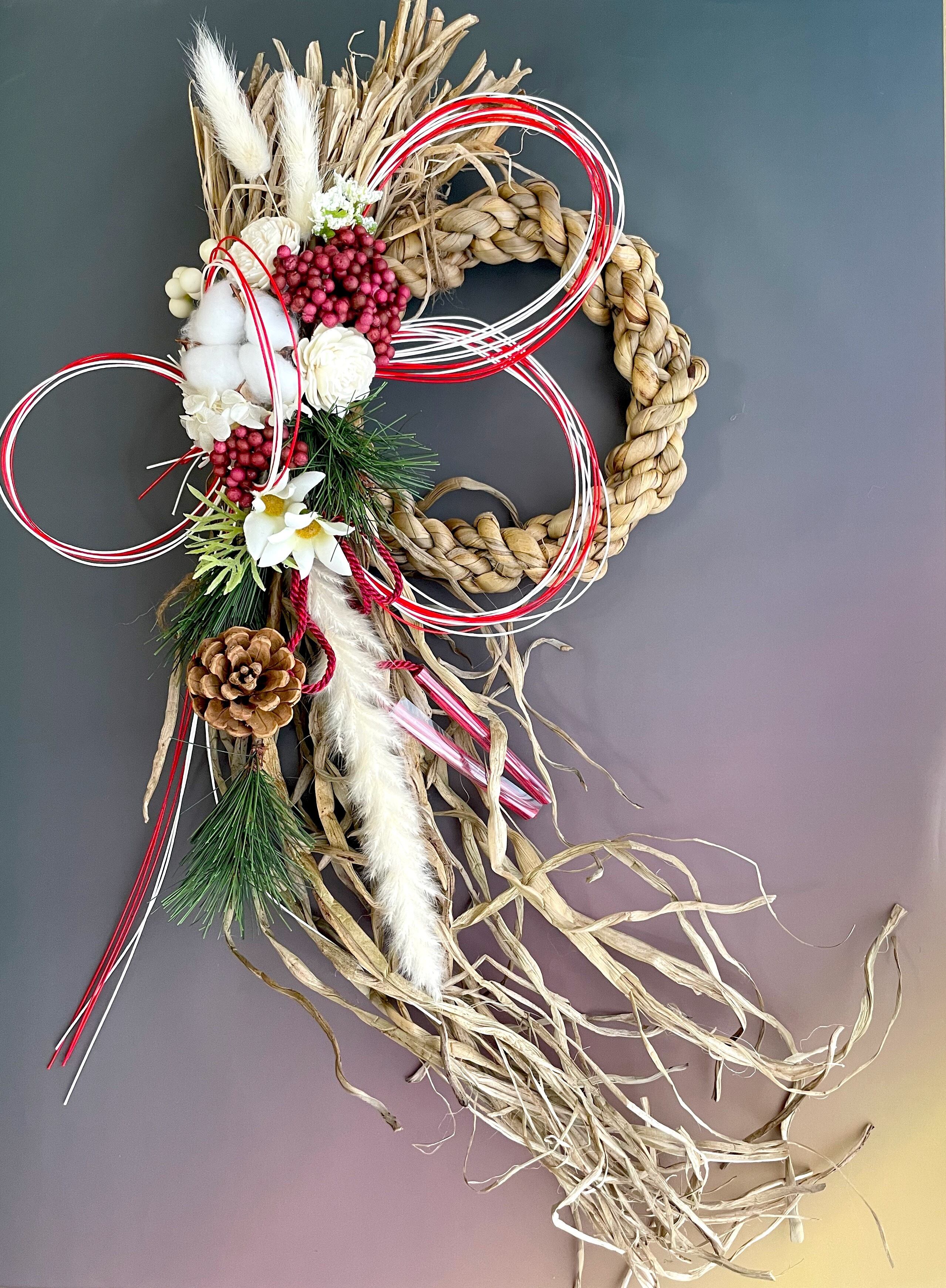 ナチュラルなドライフラワーや高級アーティフィシャルフラワーを使用したオリジナル専属デザイナーのしめ縄飾りで年神様という新年の神様をお迎えしましょう*・゜゚・*:.。..。.:*・ .。.:*・゜゚・*