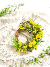 春の訪れを感じるミモザとグリーンのフラワーリース*直径15センチ*造花*無料ラッピングあり