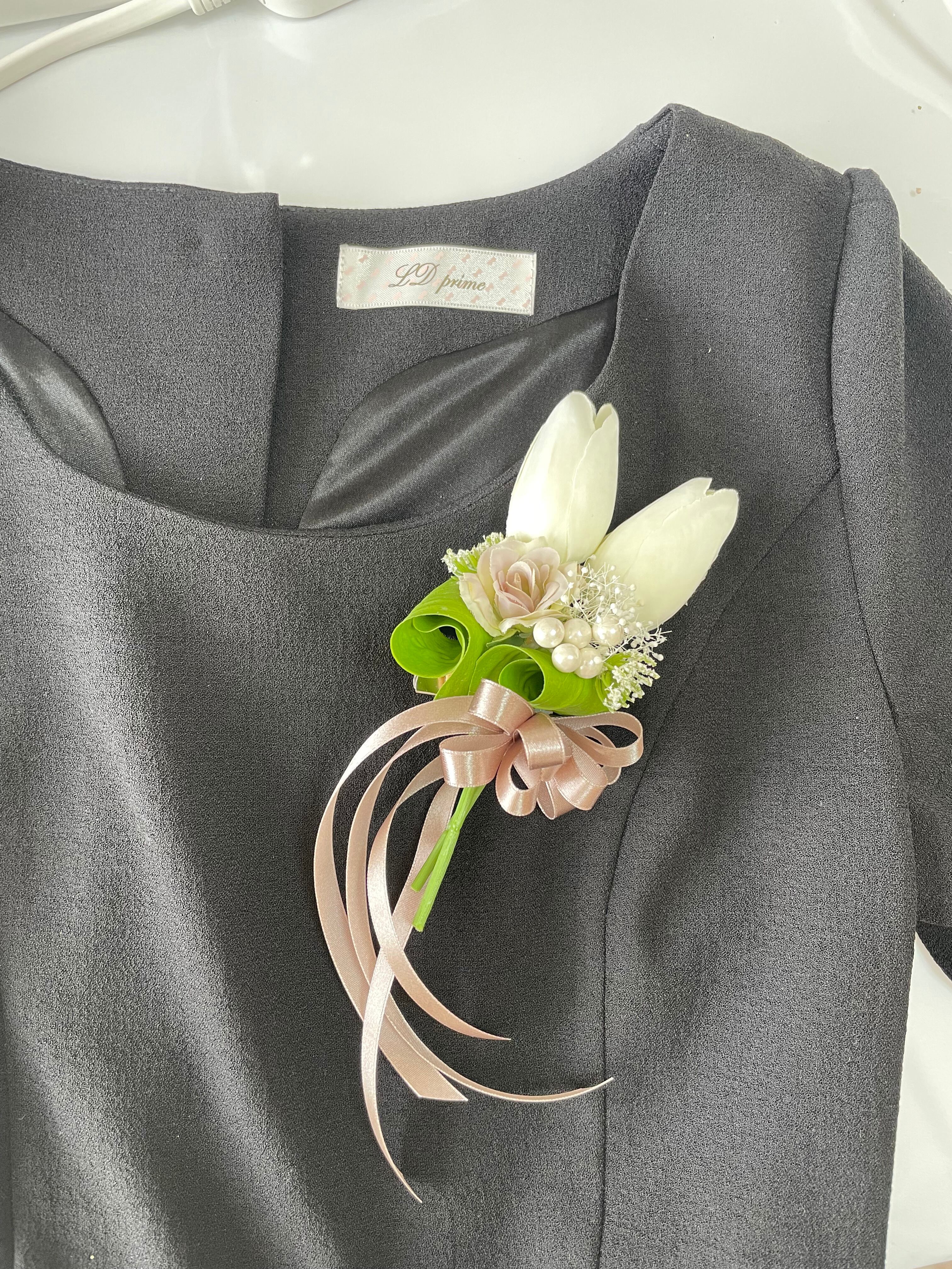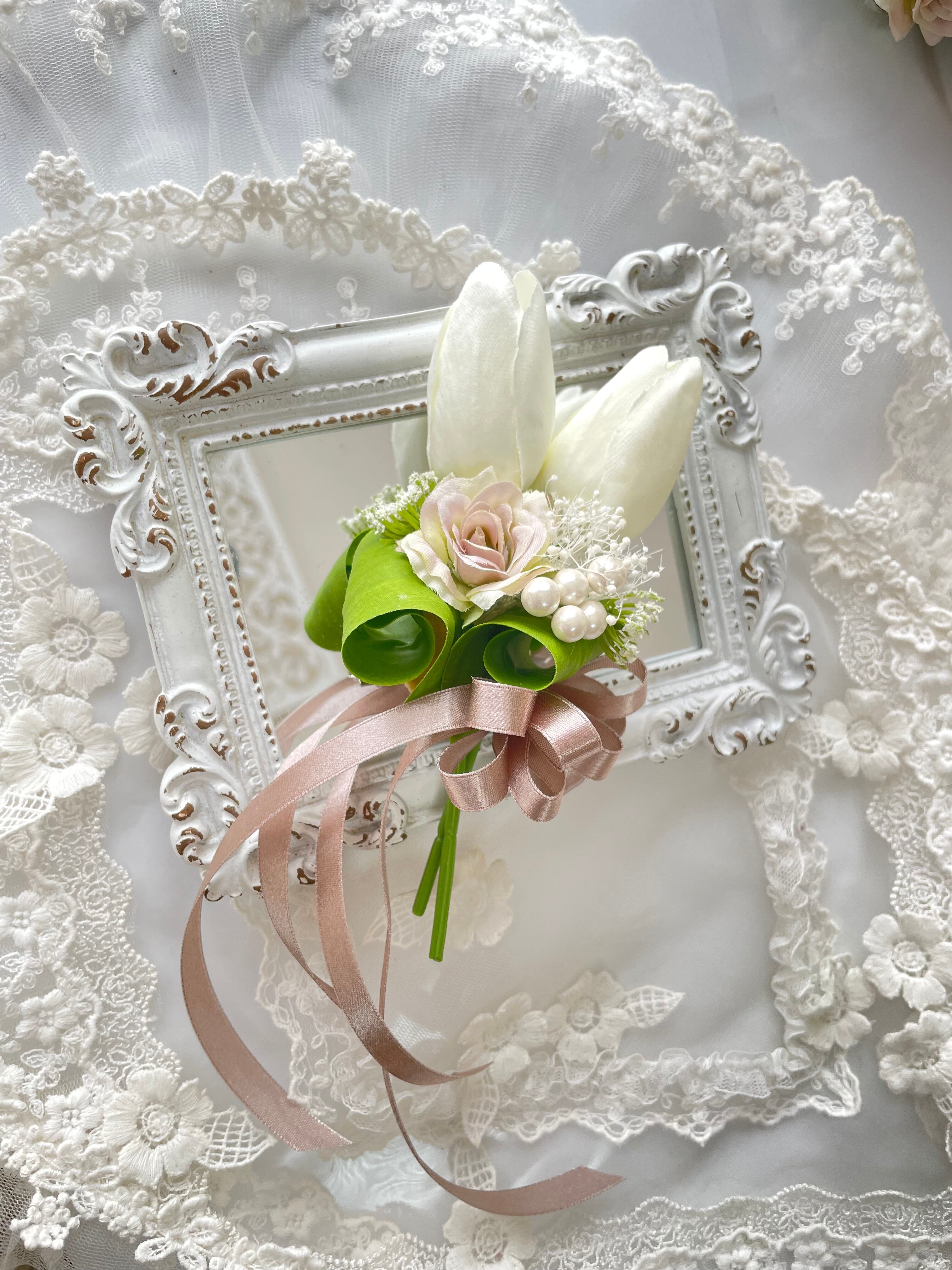 春の訪れ*花言葉は「待ちわびて」可憐な白いチューリップのコサージュ*無料ラッピングあり