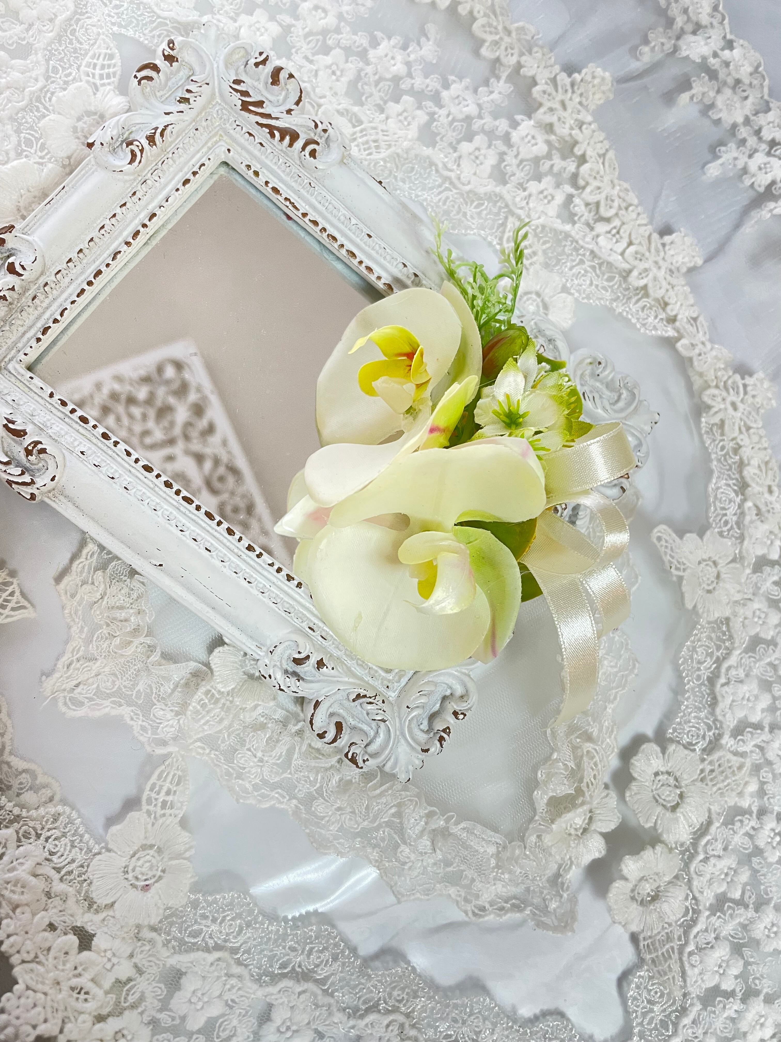 卒業*入学*フォーマルに胡蝶蘭とグリーンの美しいコサージュ*無料ラッピングあり
