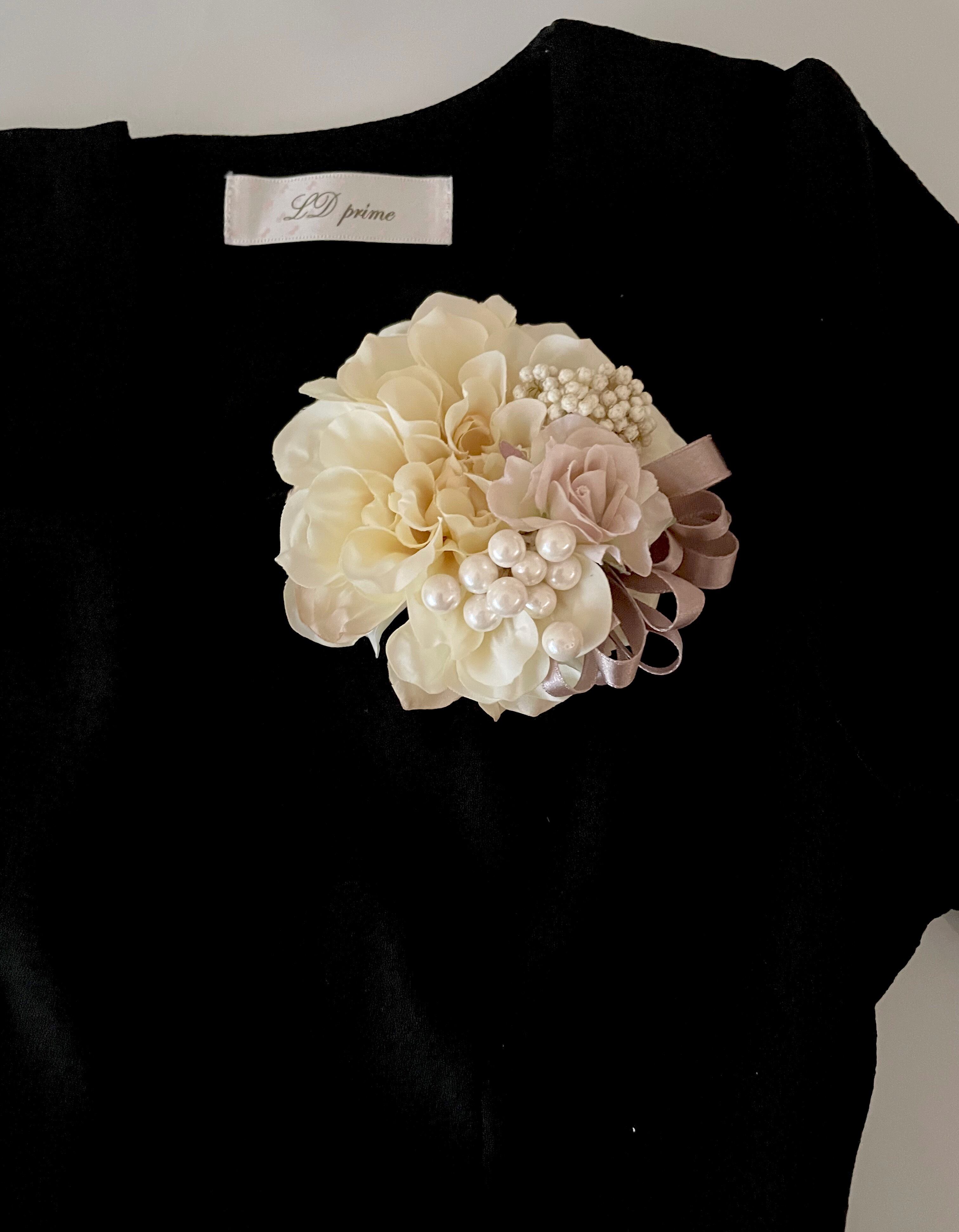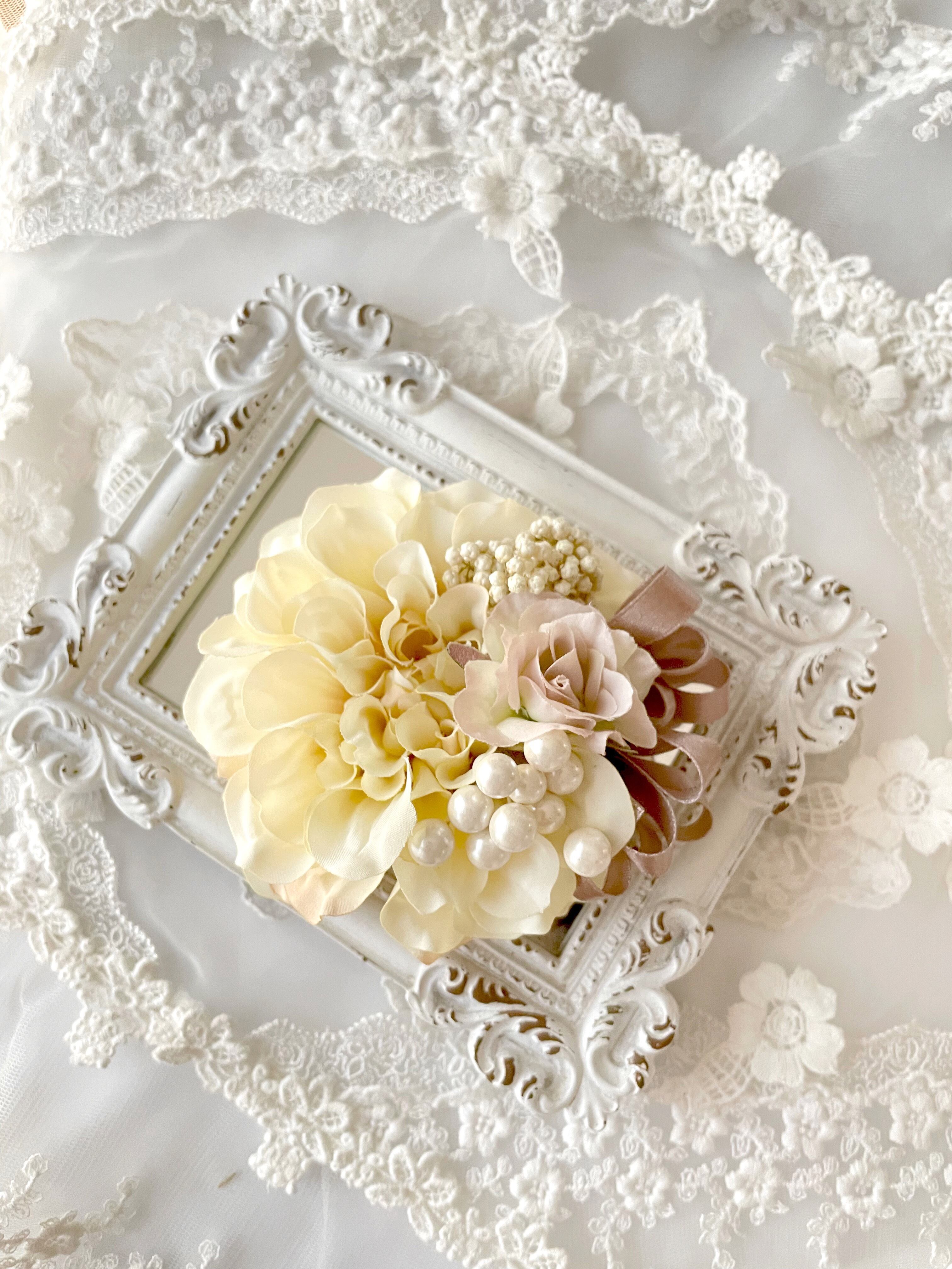 長く色褪せないアーティフィシャルフラワー造花のコサージュです。ライスフラワーは