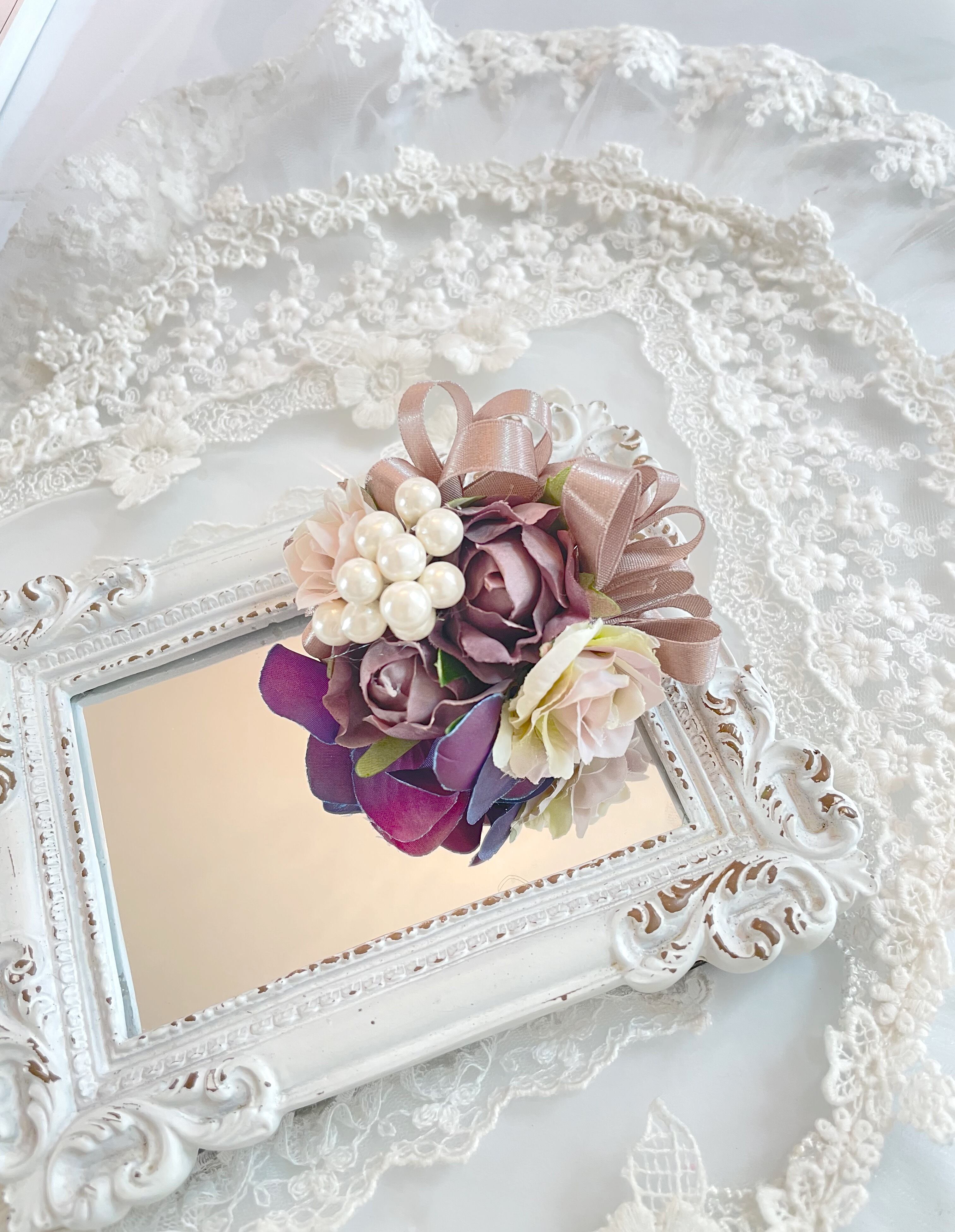 繊細で可愛らしいアーティフィシャルフラワーのコサージュ*:.。..。.:* .。.:*・゜゜・*