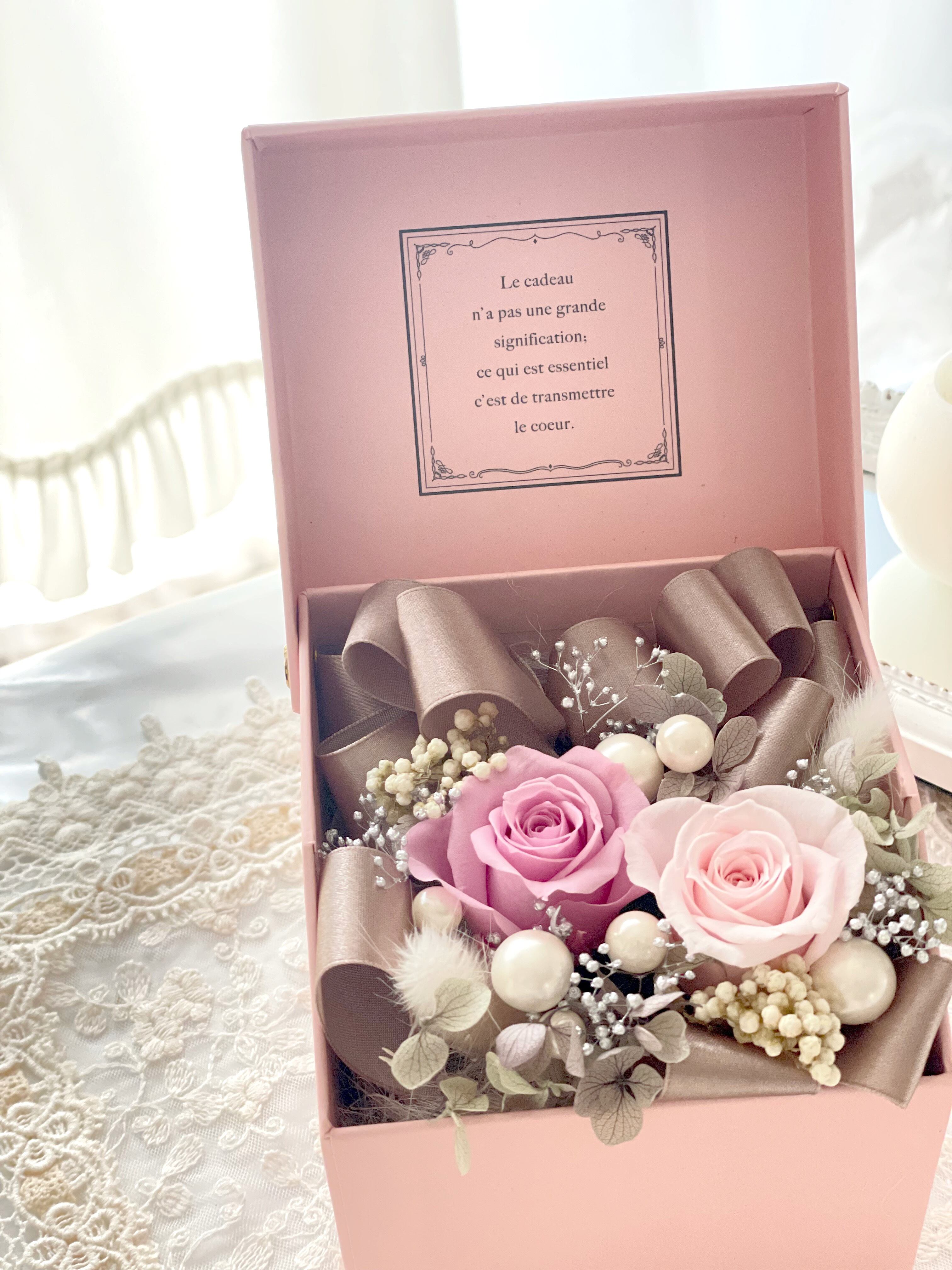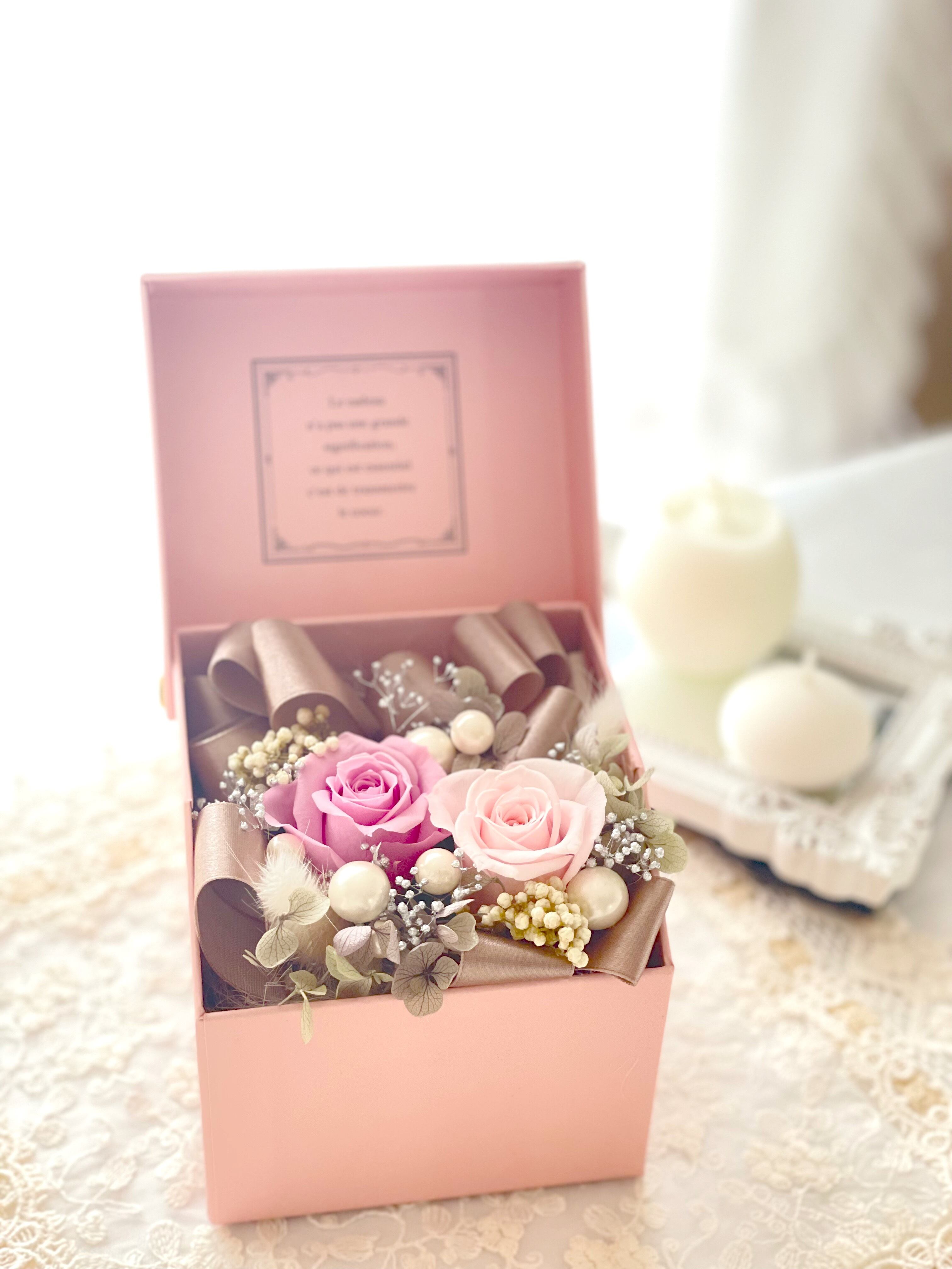 母の日早割*誕生日*結婚祝い*プリザーブドフラワートリボンのボックスアレンジ*色変更可*無料ラッピングあり