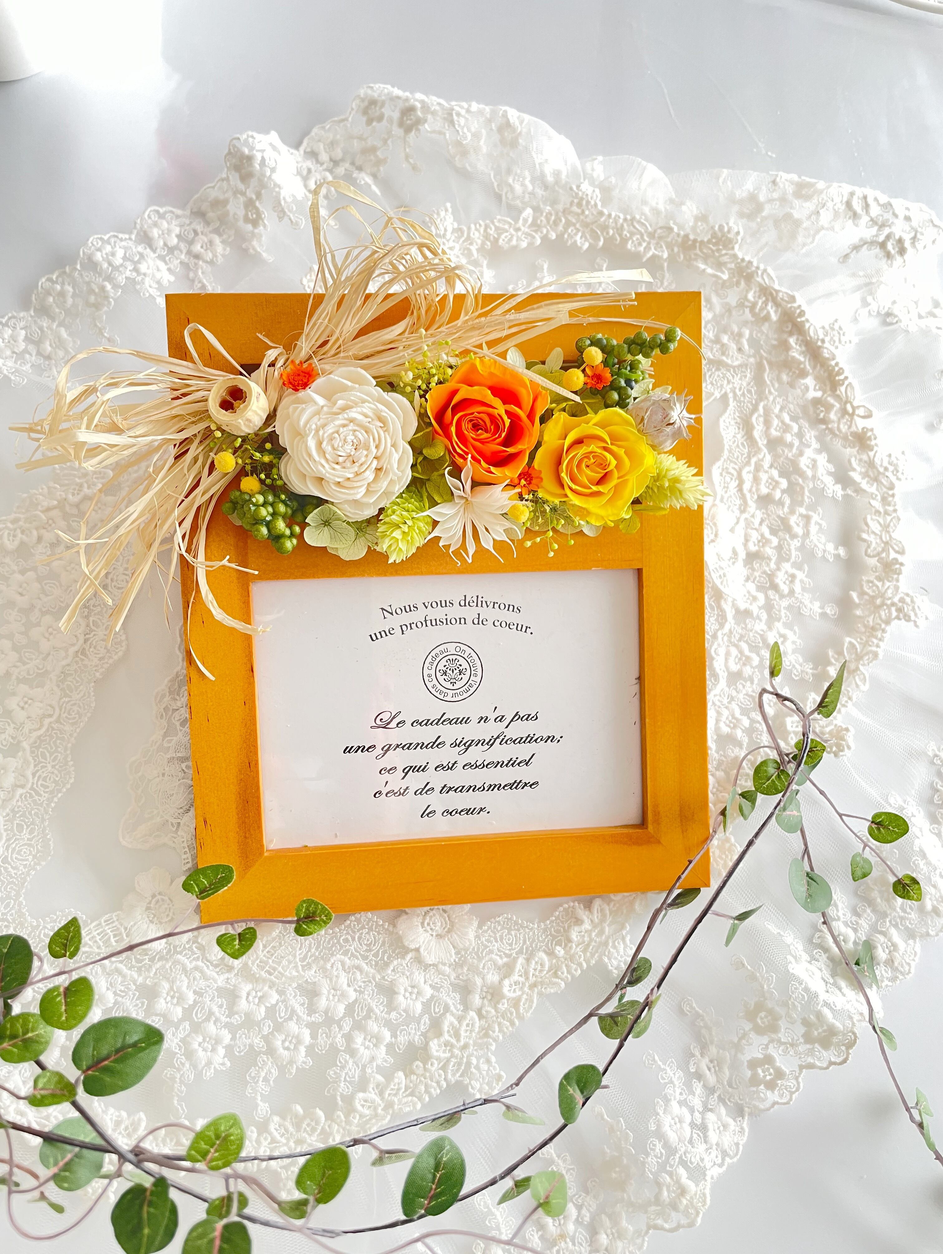 誕生日*結婚祝い*お供え*想い出に優しく咲くビタミンカラーのプリザーブドフラワーフォトフレーム*縦横飾れる2way