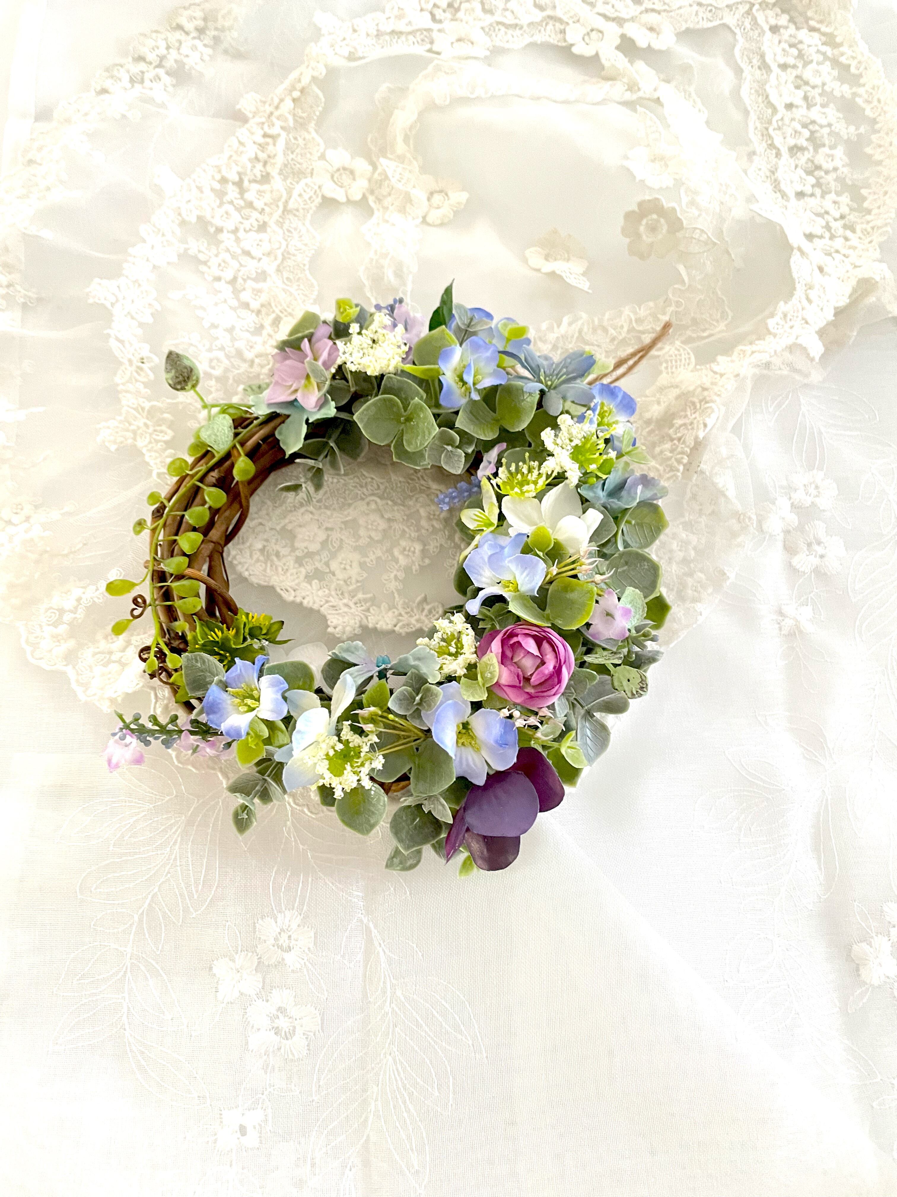 爽やかなブルーの小花のフラワーリース*直径18センチ*無料ラッピングあり