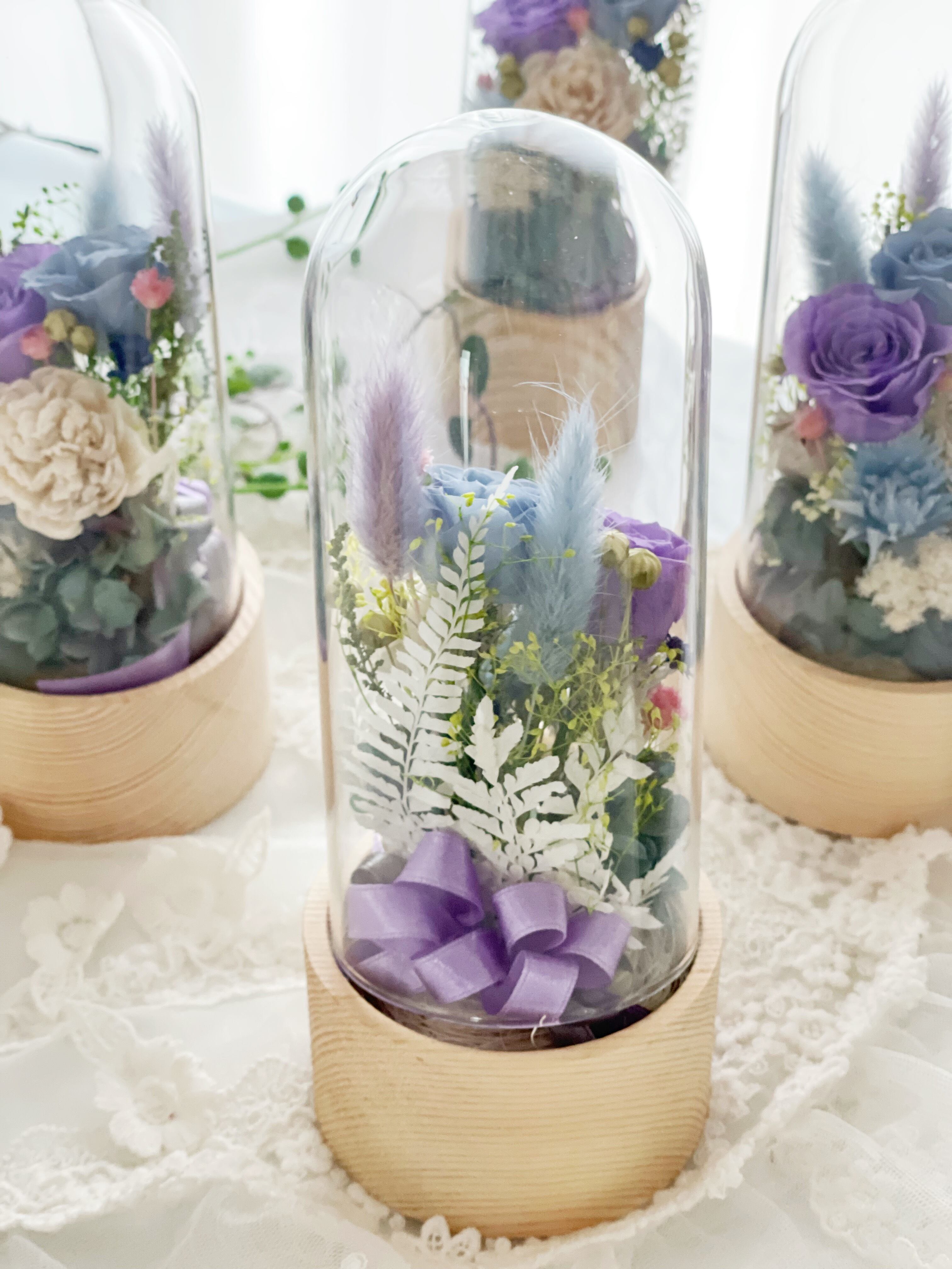 永遠に咲き続ける美しいガラスドームプリザーブドフラワー。