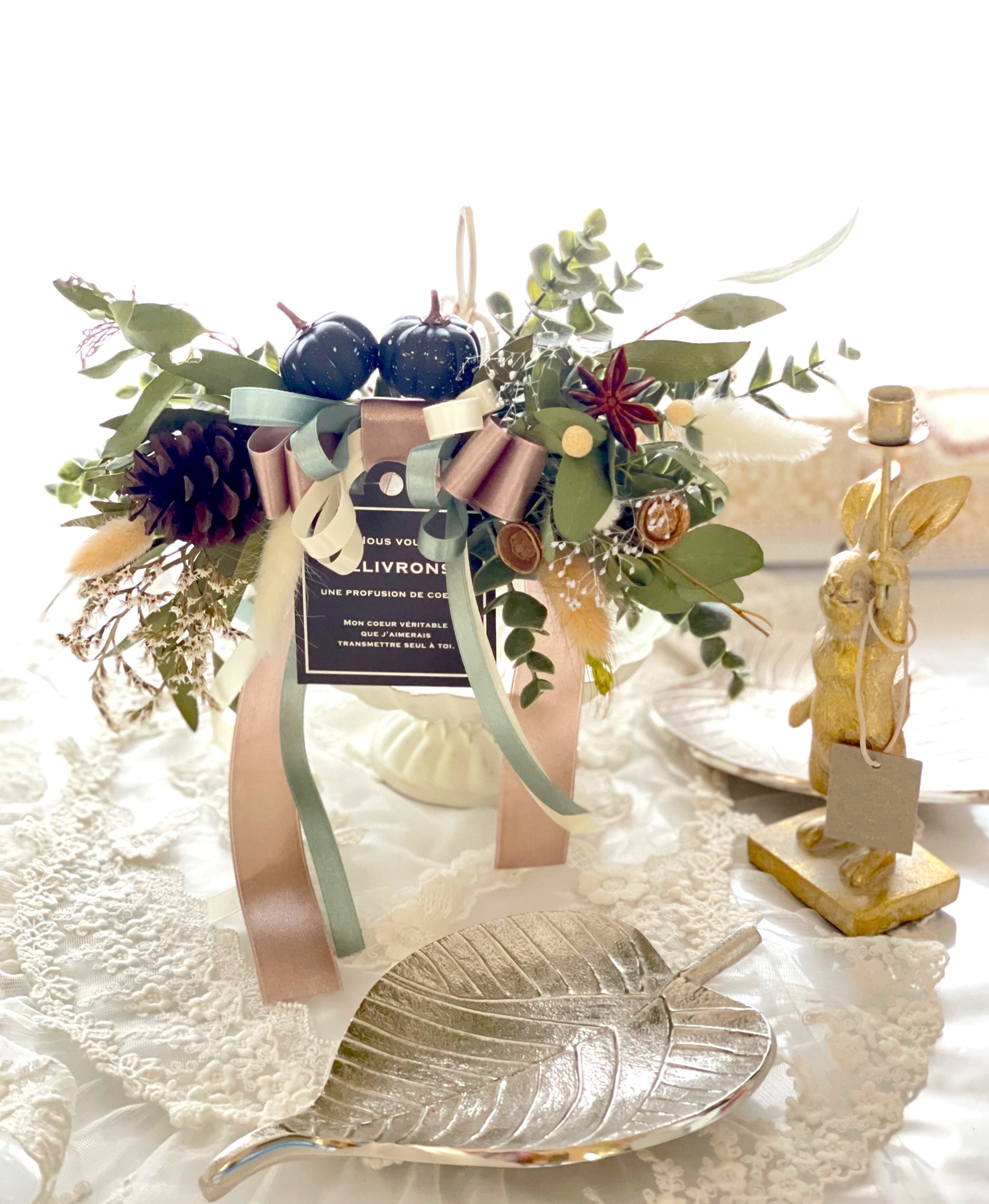 在庫状況の為、細かい花材が季節物のため少し変わる場合もありますがイメージは変わらずにお作り致します。