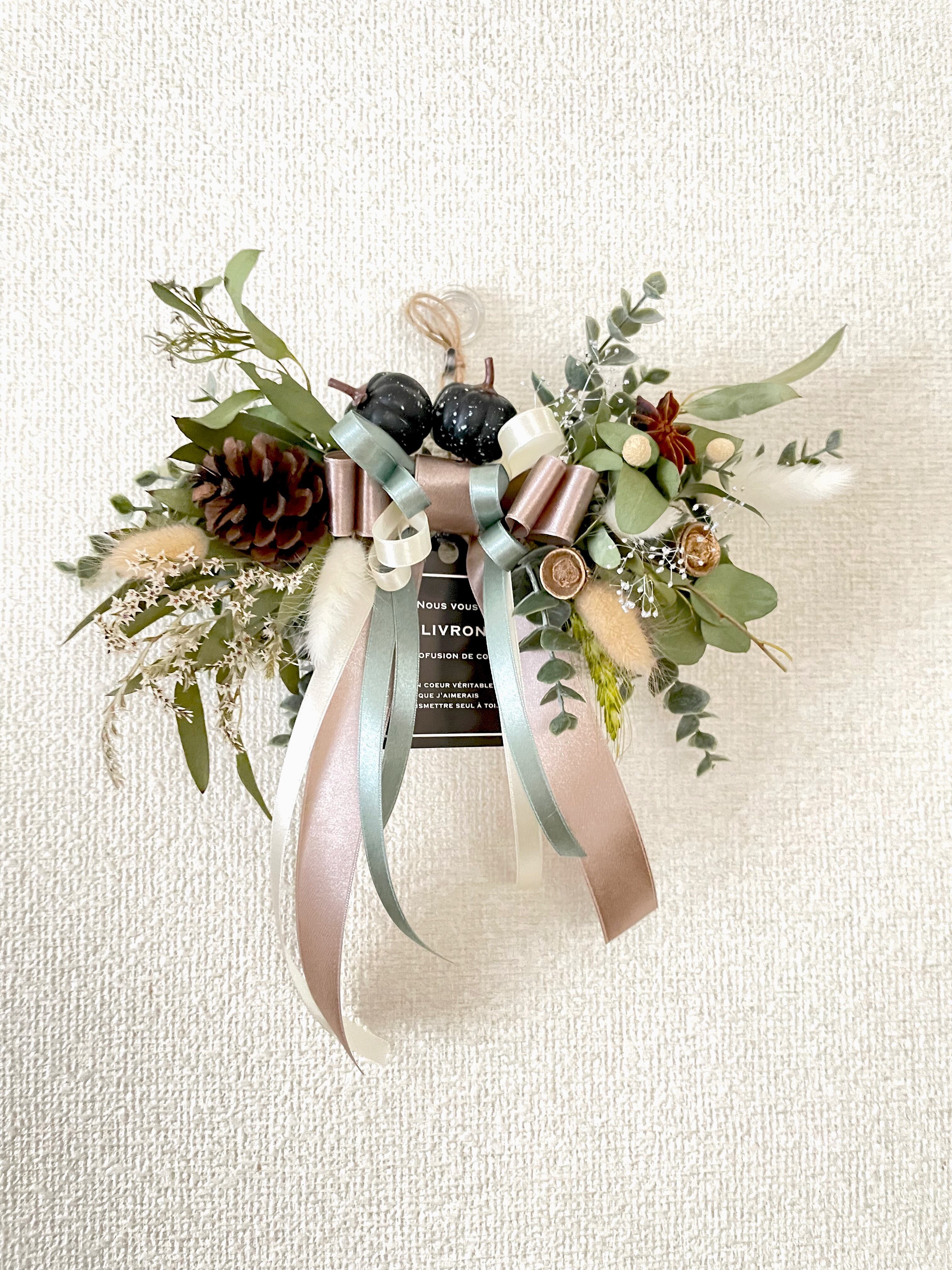 可愛い秋の木の実を使用しハロウィーンスワッグをデザインしました。