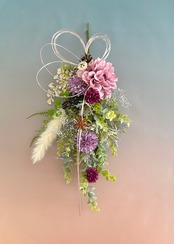 お正月早割り*新作*紫ダリアとマムで祝う自然に馴染む和風スワッグ