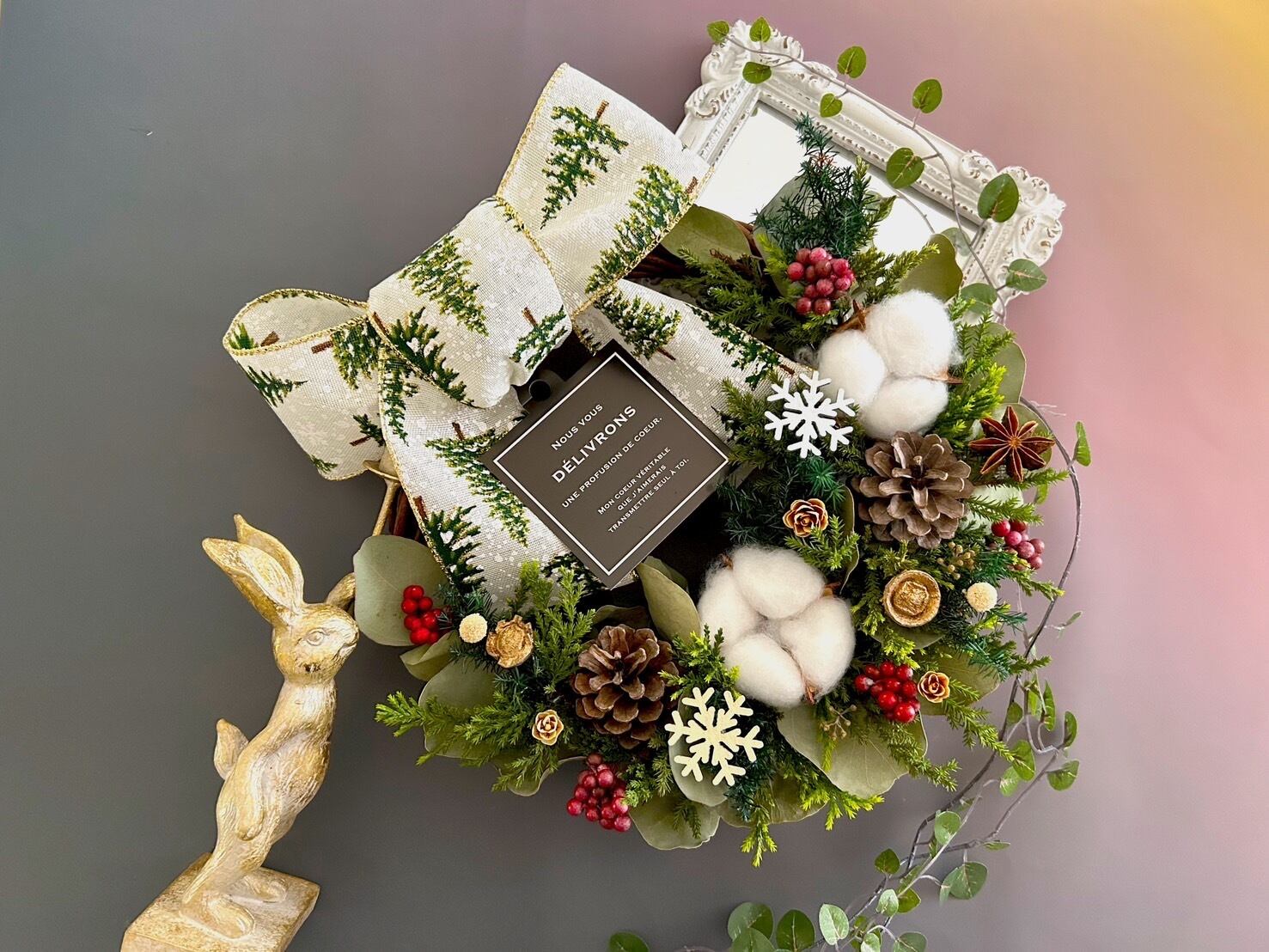 2024年新作*特別価格*早割りクリスマス*フレッシュグリーンと木の実の森の散歩道クリスマスリース