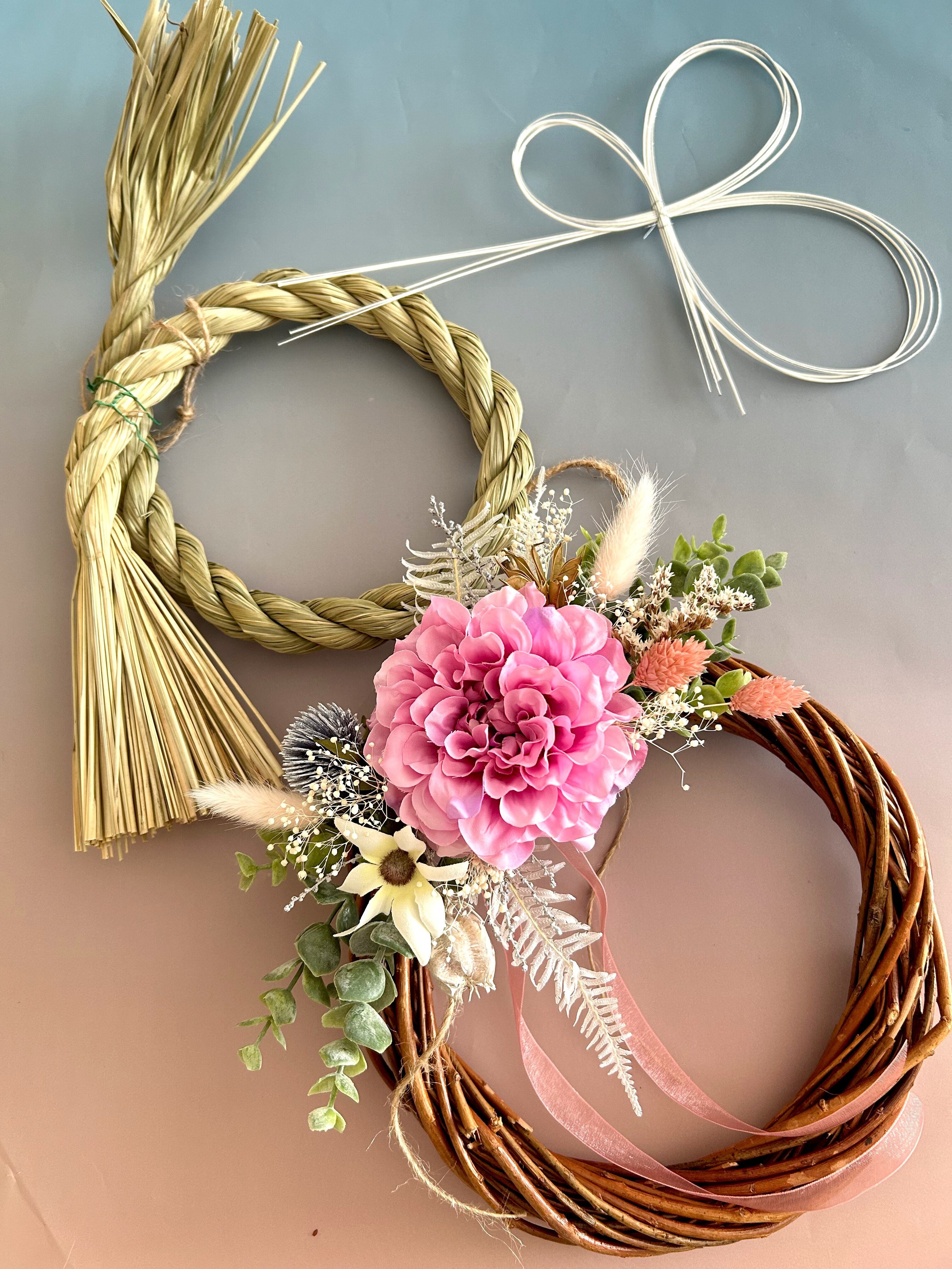 特別価格*3way*花で飾るしめ縄お正月飾り*取り外し可能*リース付き*無料ラッピングあり*花の色変更可